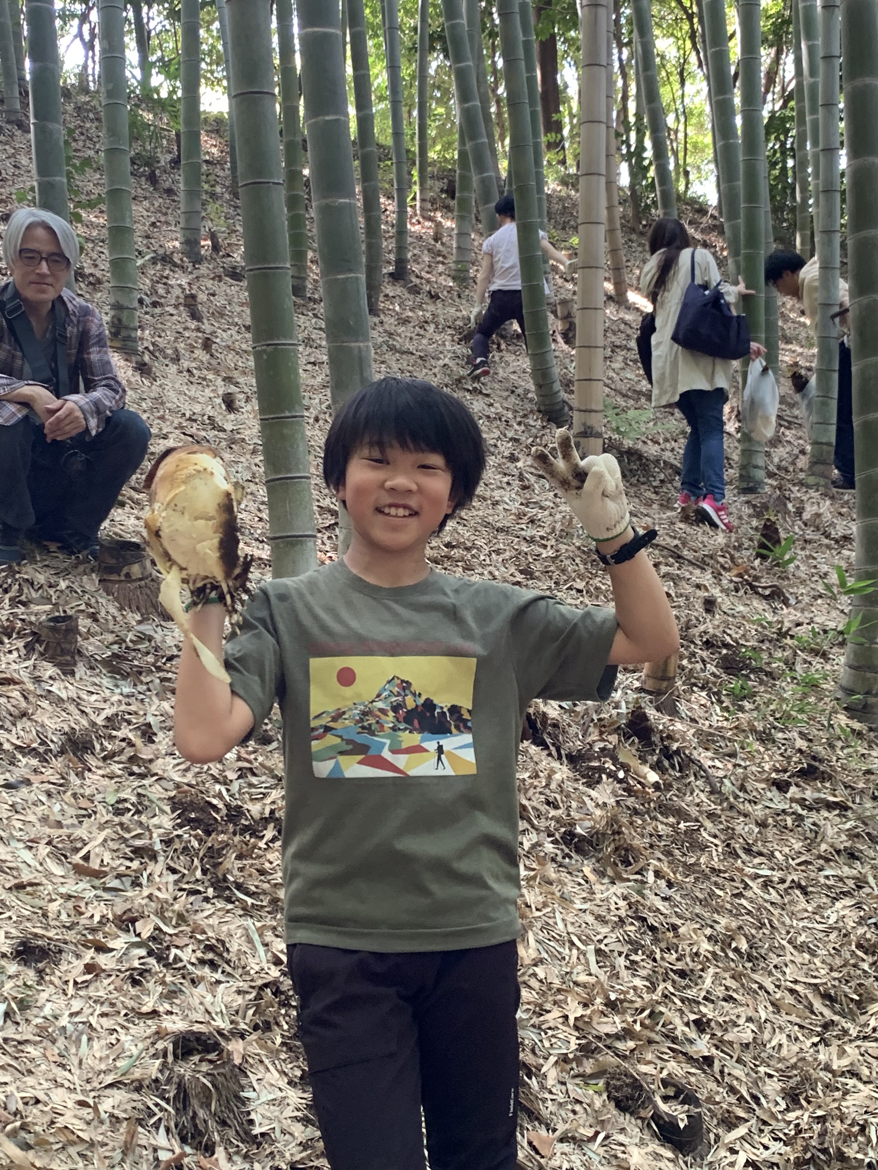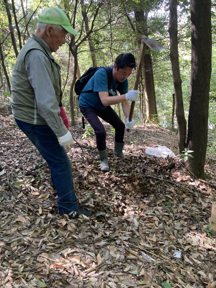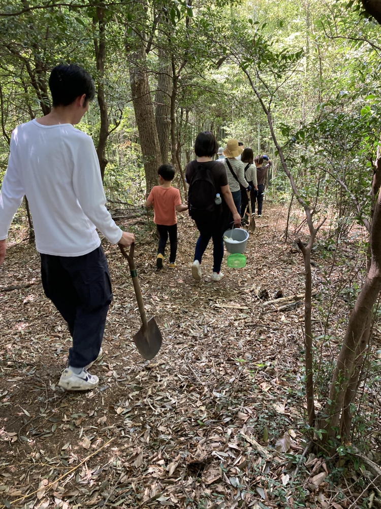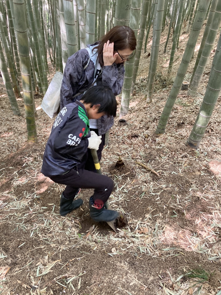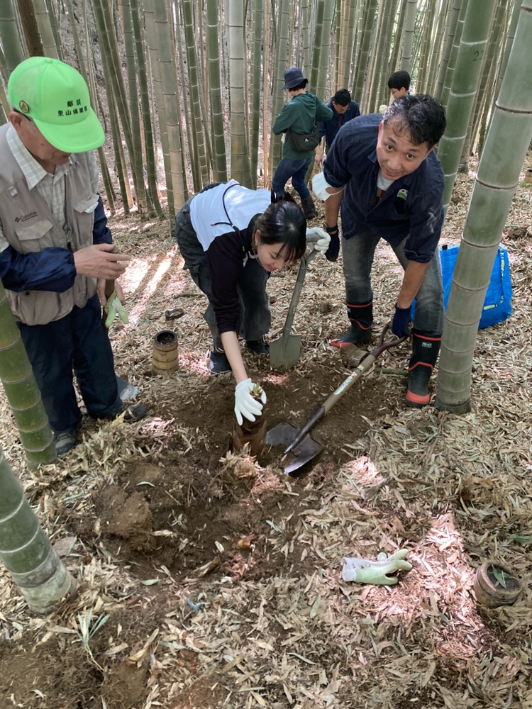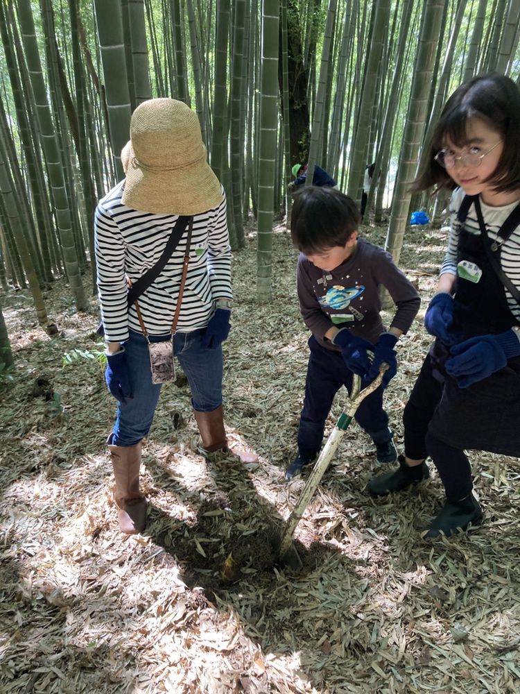 都筑中央公園の竹林は急な斜面地が多く、今回の竹林も斜面地になるので足元に注意して掘ってもらいました。ボランティアスタッフのアドバイスや力を借りながらの作業になりましたが、皆さん両手に余るほどのタケノコに大満足でした。