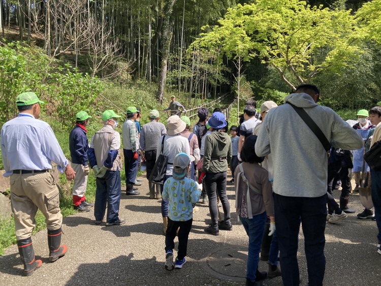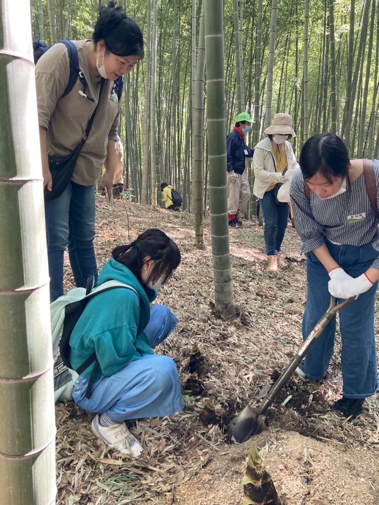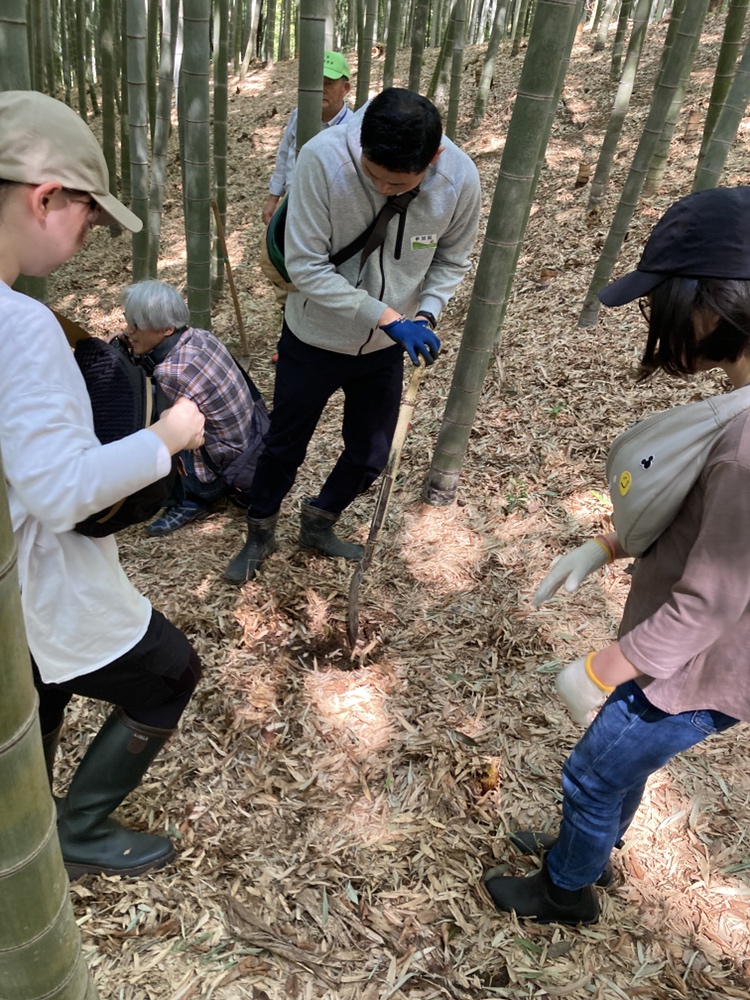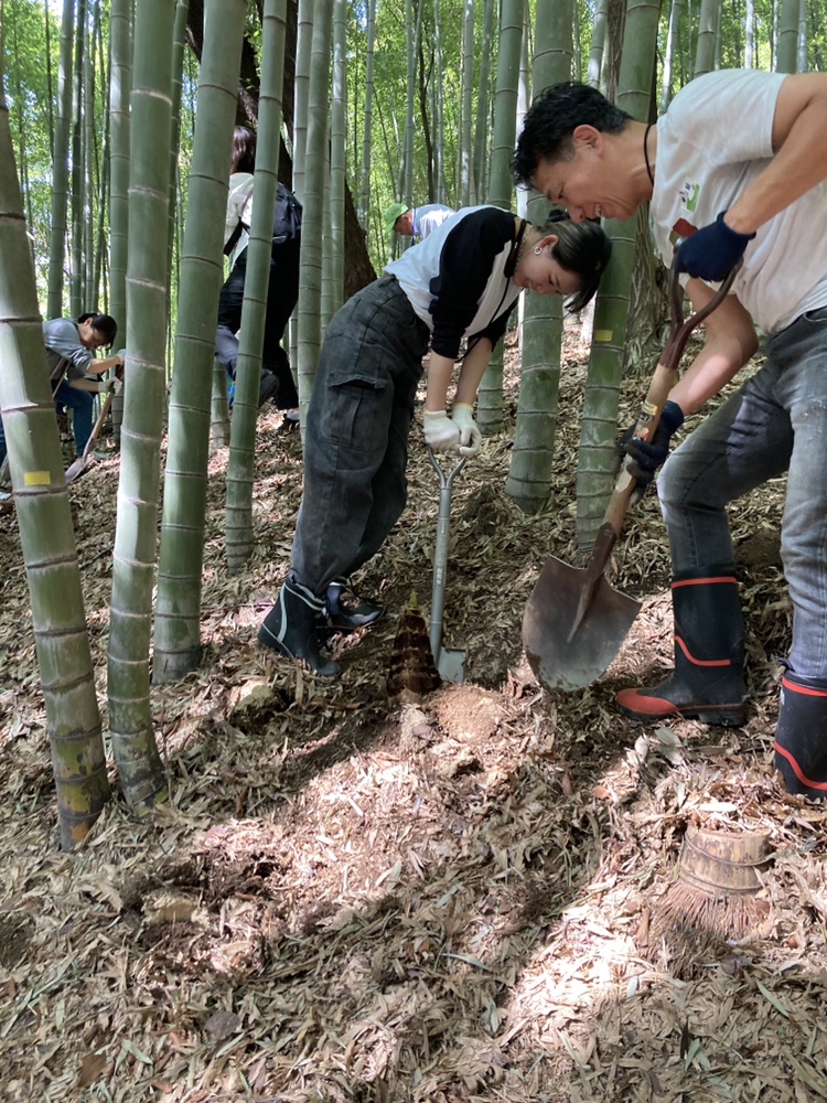 今年は豊作の表年にあたり、沢山のタケノコが生えています。その為、綺麗な竹林を保つためにも沢山の間伐が必要となりますので、午前中の組と午後の組の2部に分かれて100人が抽選で選ばれて参加してくれました。