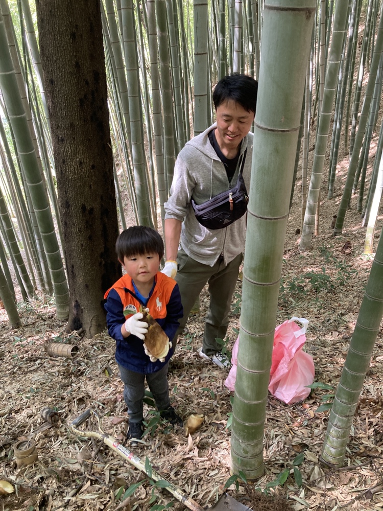 両手にタケノコを持って斜面地を上るのはちょっときつかったようですが・・・。