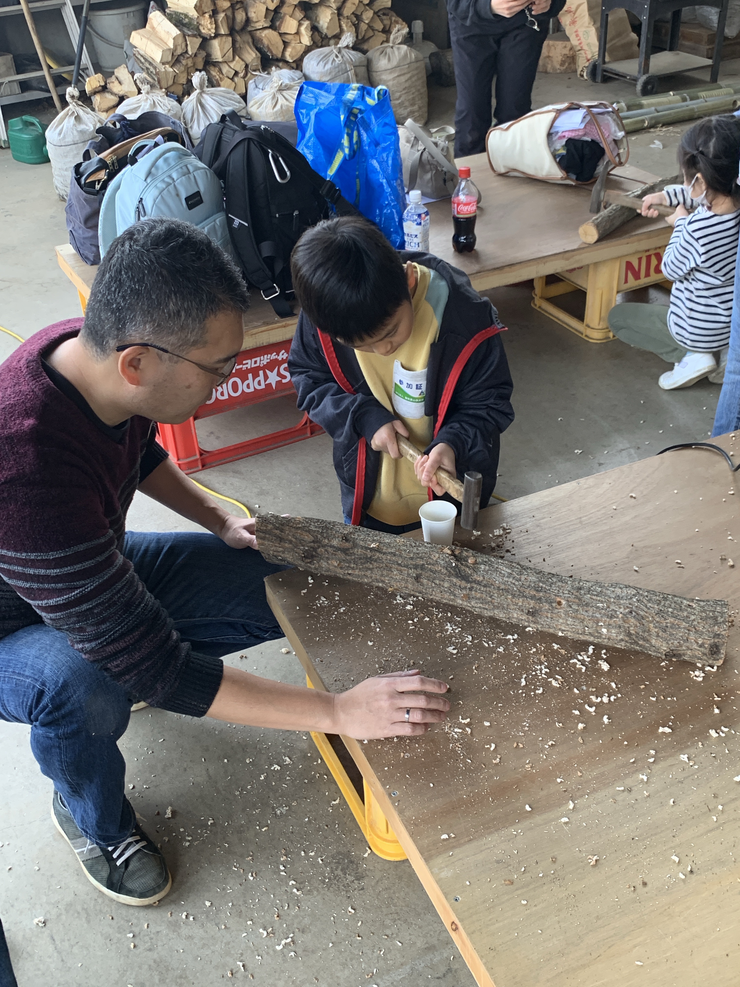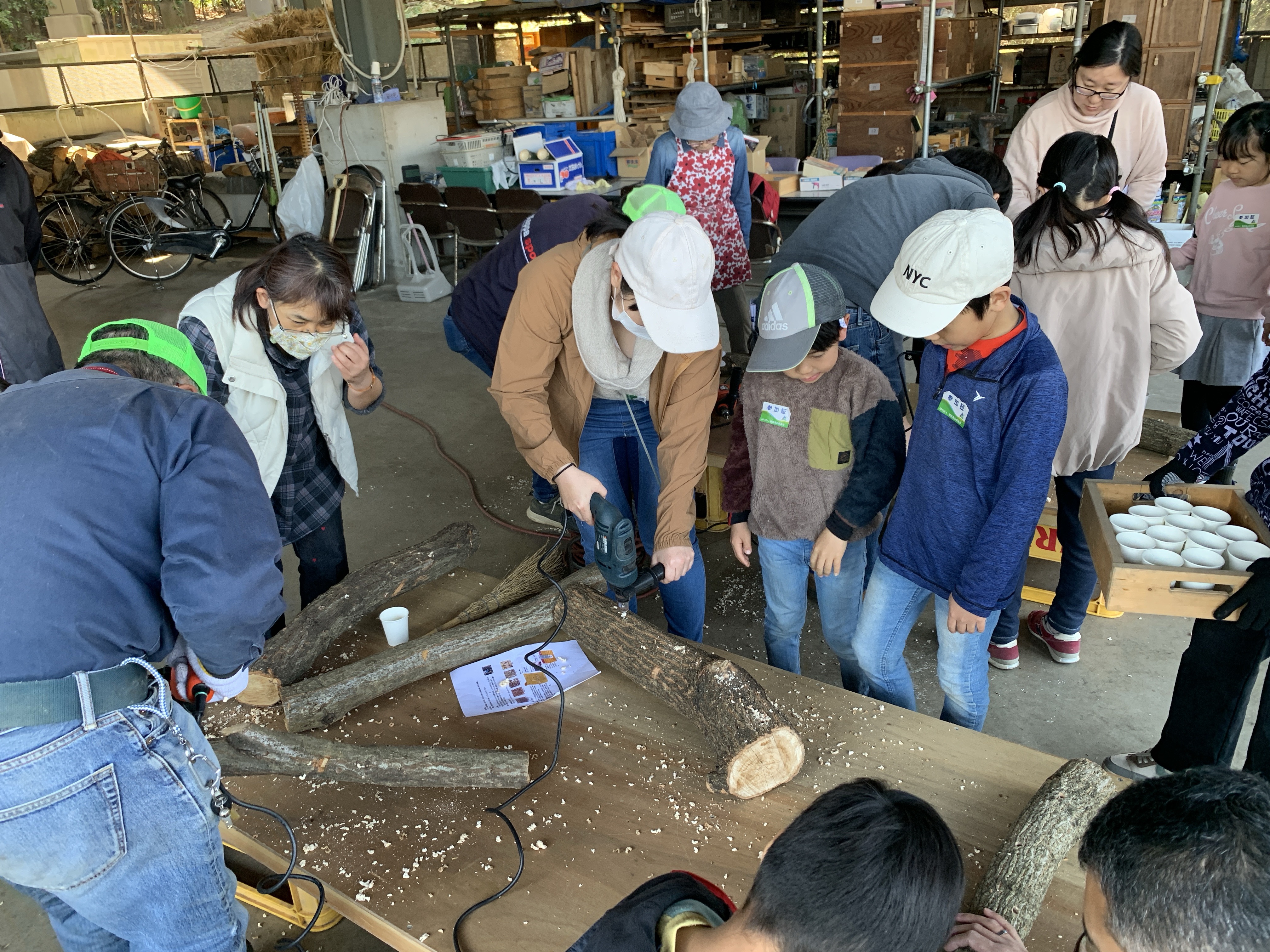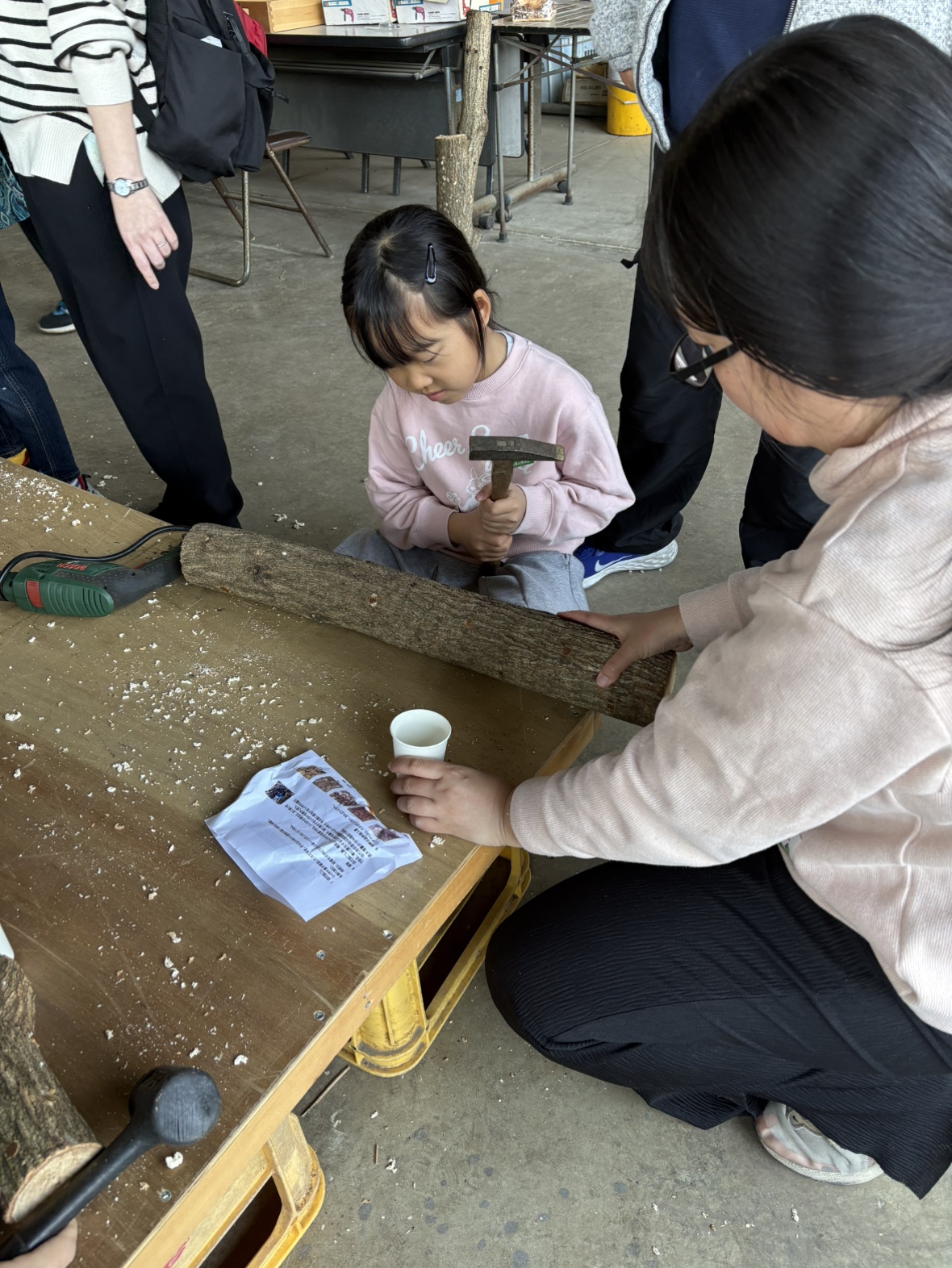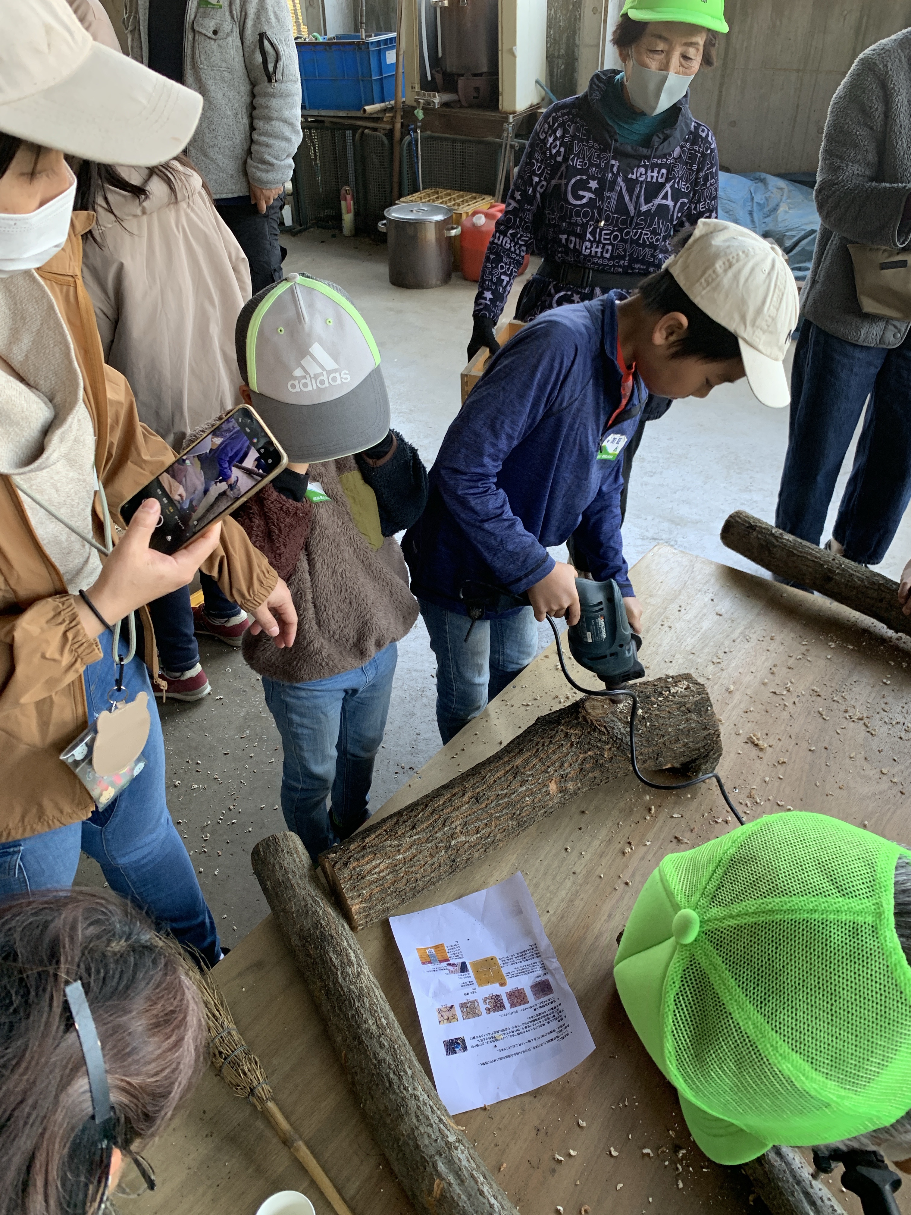 里山保全体験(シイタケの植菌) 3月2日(日) 03/02/2504/24/25 暖かく、穏やかな天気の中7家族16名の方々が、参加されました。参加者は、スタッフより原木にシイタケが生えてくるまでの説明を聞き、シイタケが生えて来るまでに2年もかかる事にびっくり! 原木にドリルで穴を開け、シイタケの種となる駒をトンカチでトントン埋め込んでいきます。レストハウス1階にトンカチの合唱が響き渡っていました。 皆、2年後の収穫を楽しみに種駒を植え付けた重たい原木を大事そうに持って帰っていきました。 Y.F. まずほだ木に穴をあけます。 次に菌糸のついたダボを打ち込みます。 共有:Tweet 関連