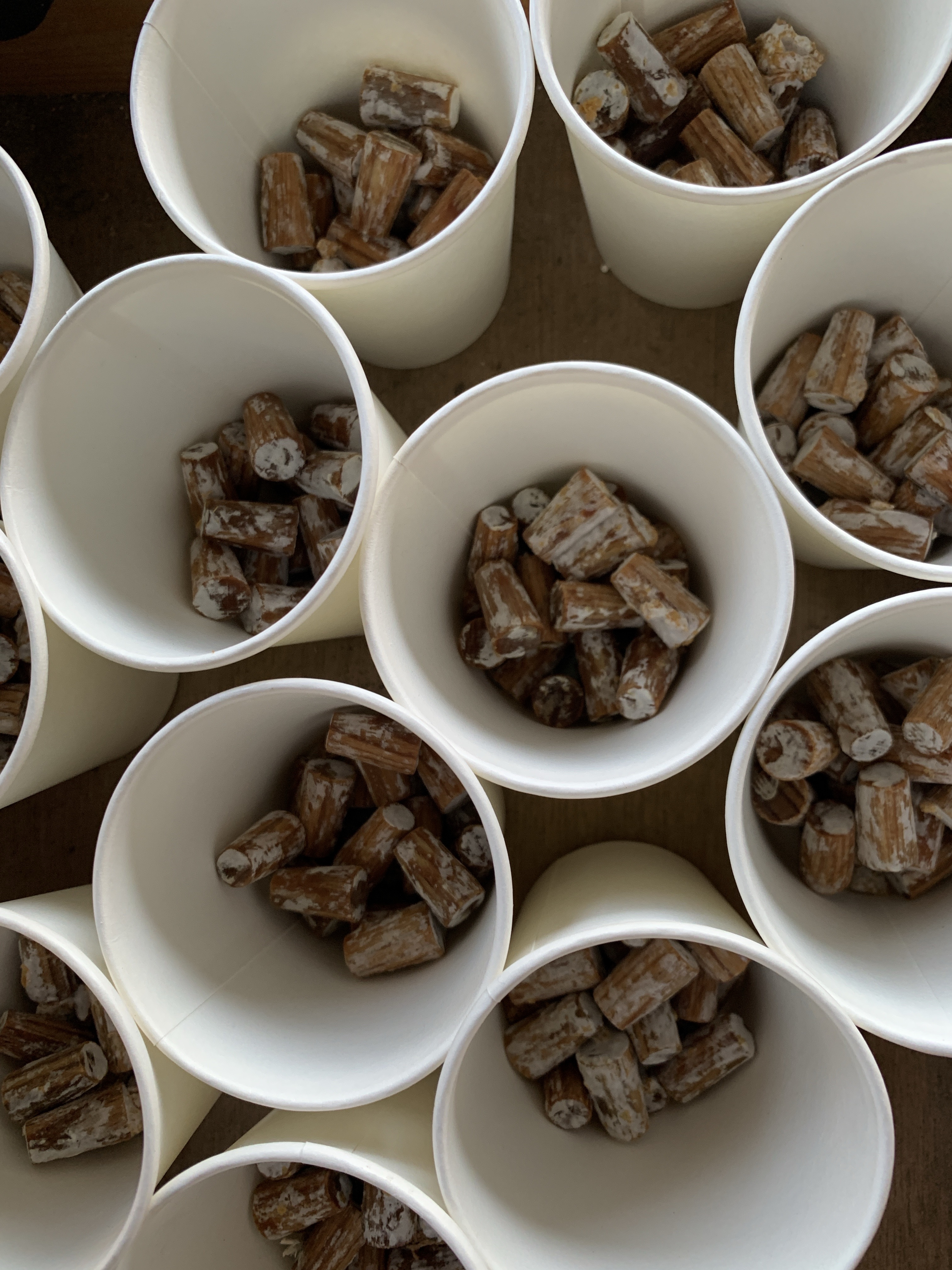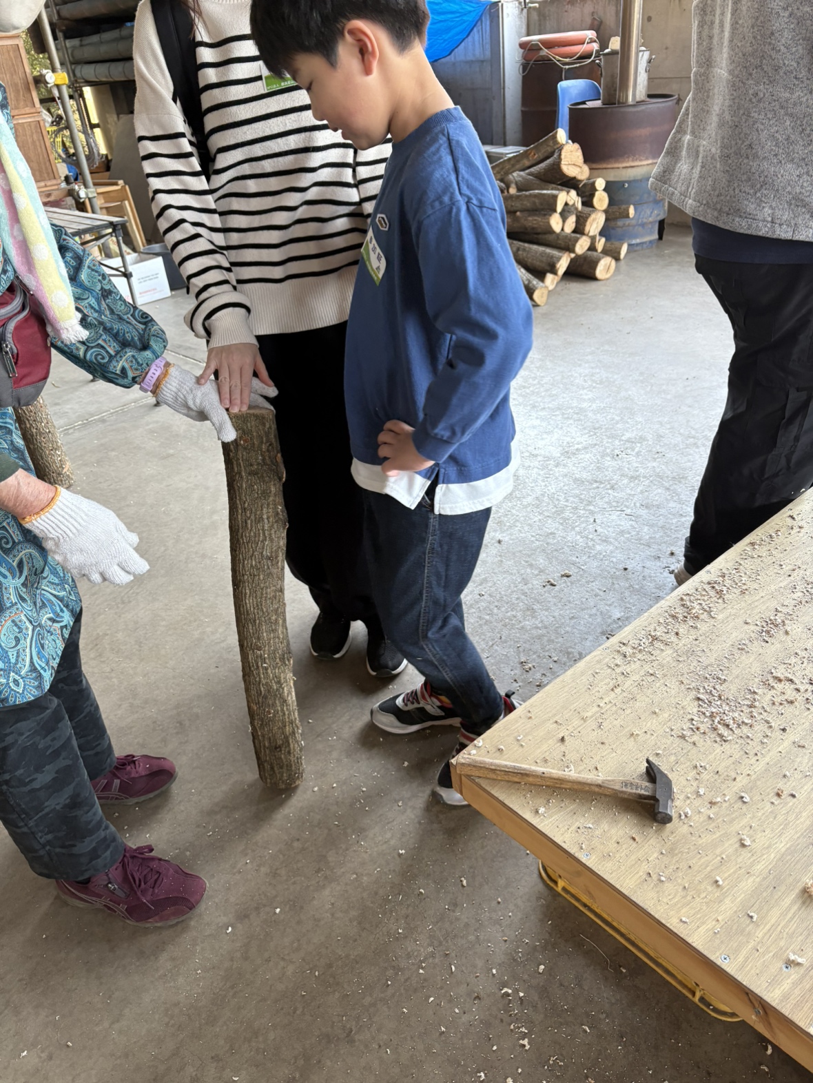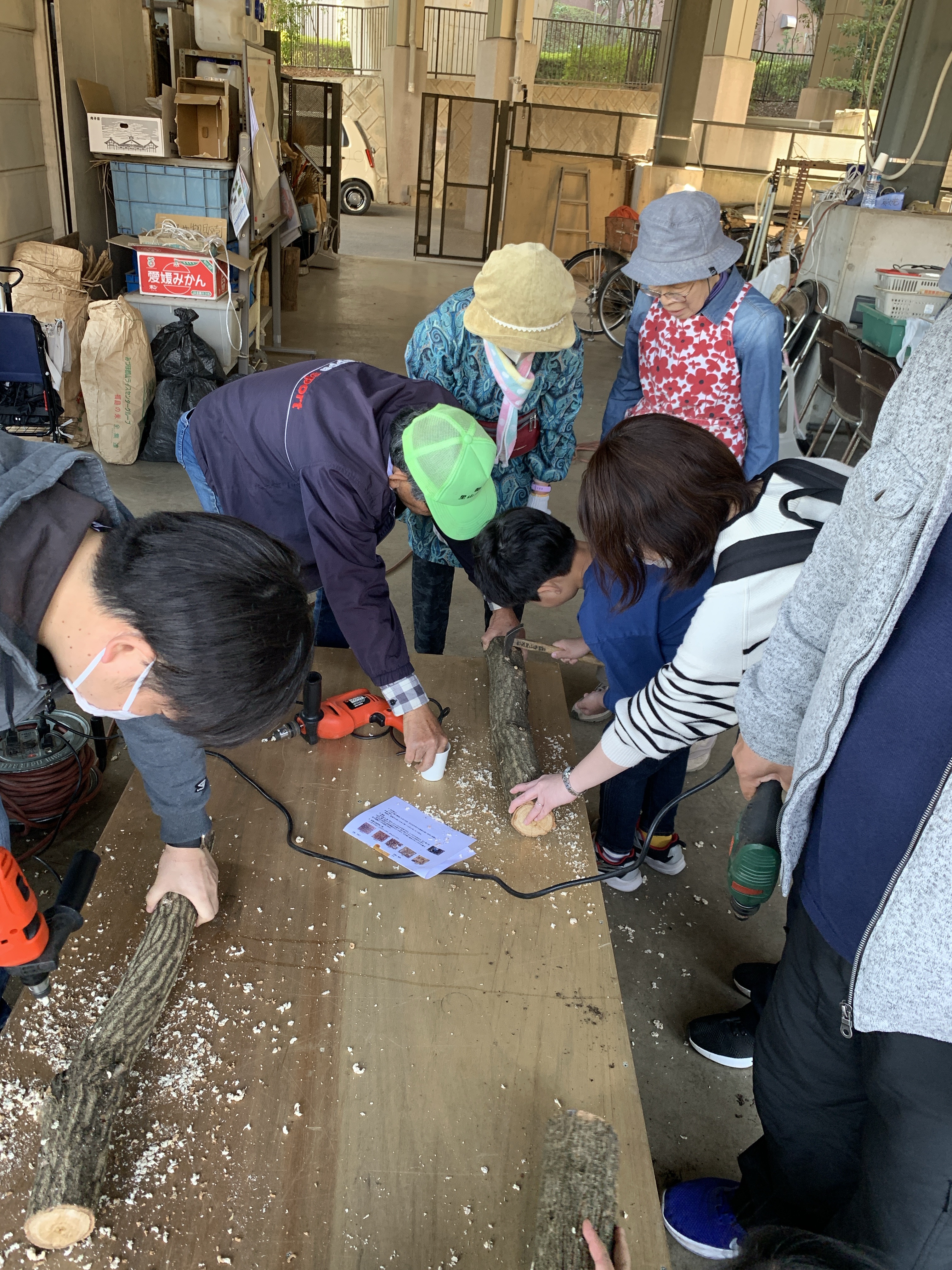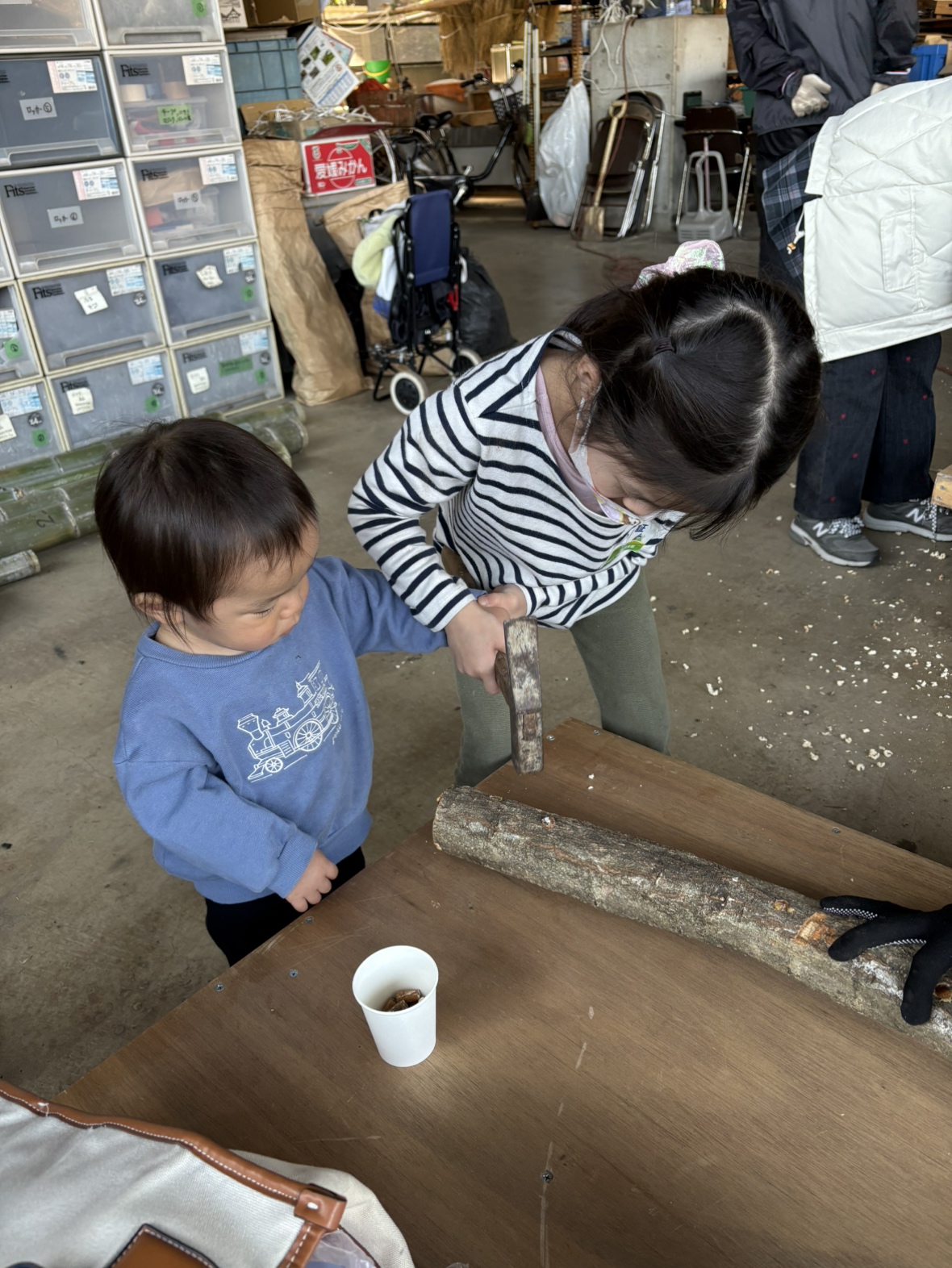 里山保全体験(シイタケの植菌) 3月2日(日) 03/02/2504/24/25 暖かく、穏やかな天気の中7家族16名の方々が、参加されました。参加者は、スタッフより原木にシイタケが生えてくるまでの説明を聞き、シイタケが生えて来るまでに2年もかかる事にびっくり! 原木にドリルで穴を開け、シイタケの種となる駒をトンカチでトントン埋め込んでいきます。レストハウス1階にトンカチの合唱が響き渡っていました。 皆、2年後の収穫を楽しみに種駒を植え付けた重たい原木を大事そうに持って帰っていきました。 Y.F. まずほだ木に穴をあけます。 次に菌糸のついたダボを打ち込みます。 共有:Tweet 関連