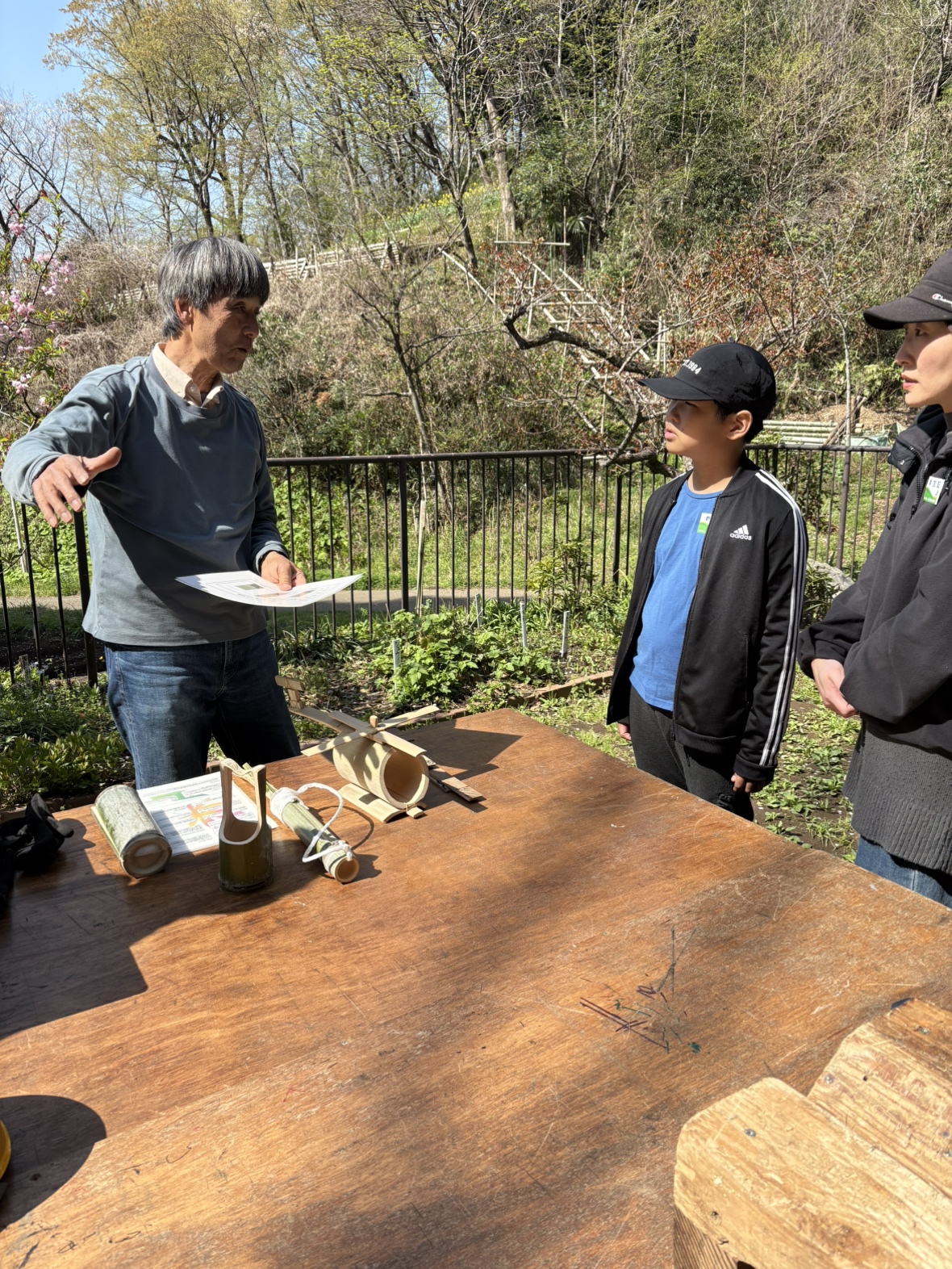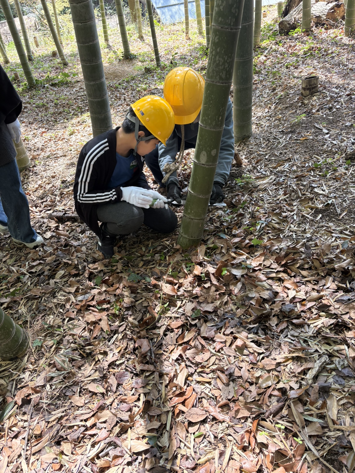 里山保全体験(竹林の手入れ・竹細工) 4月5日(土) 04/05/2504/17/25 すがすがしい春の季節になりました。1家族の参加があり、先ずは孟宗竹の特徴や竹林整備の知識を学んだあと、竹林に入って竹の伐採を行いました。さすが小学5年生ともなると鋸の使い方もスムーズで、難なく太めの竹を切り倒しました。3メートルの玉切りや、枝払い、運び出しも問題なし。戻る際に階段脇の斜面に頭を出したばかりの筍を発見、唐鍬で無事ゲット。 後半の竹細工では、初物の筍を盛るための竹の器と家族4人分の箸を、伐採した竹を使って作りました。今夜の夕食は最高だったに違いない。 共有:Tweet 関連