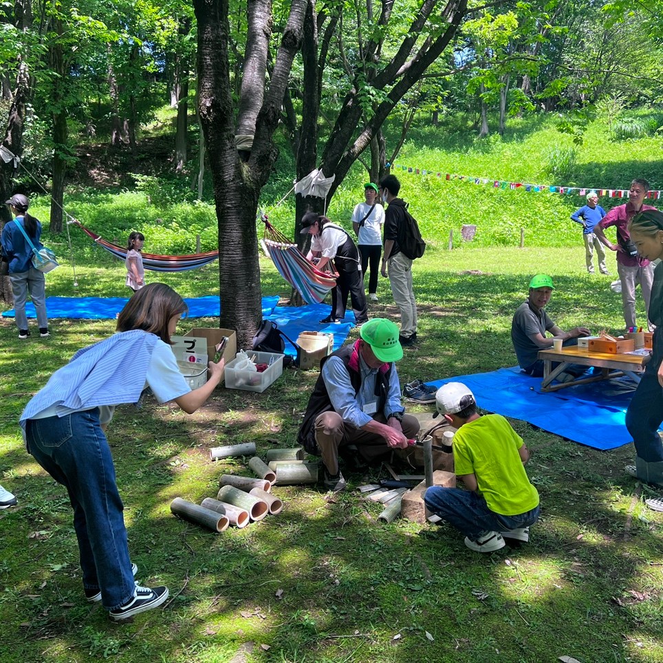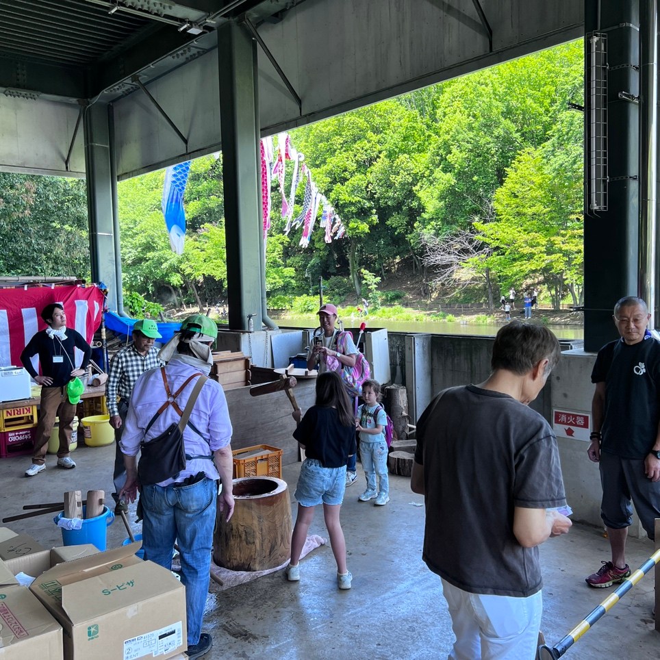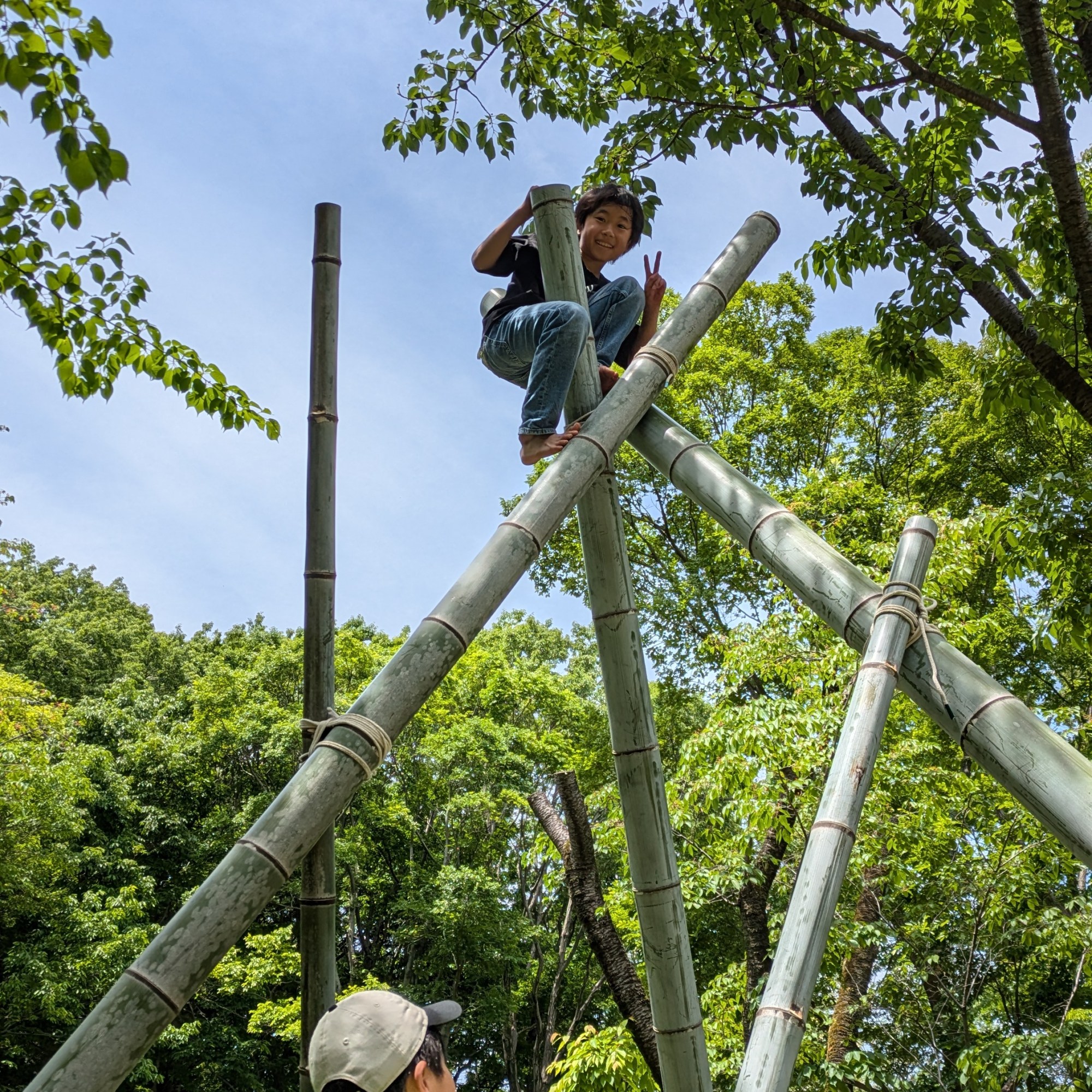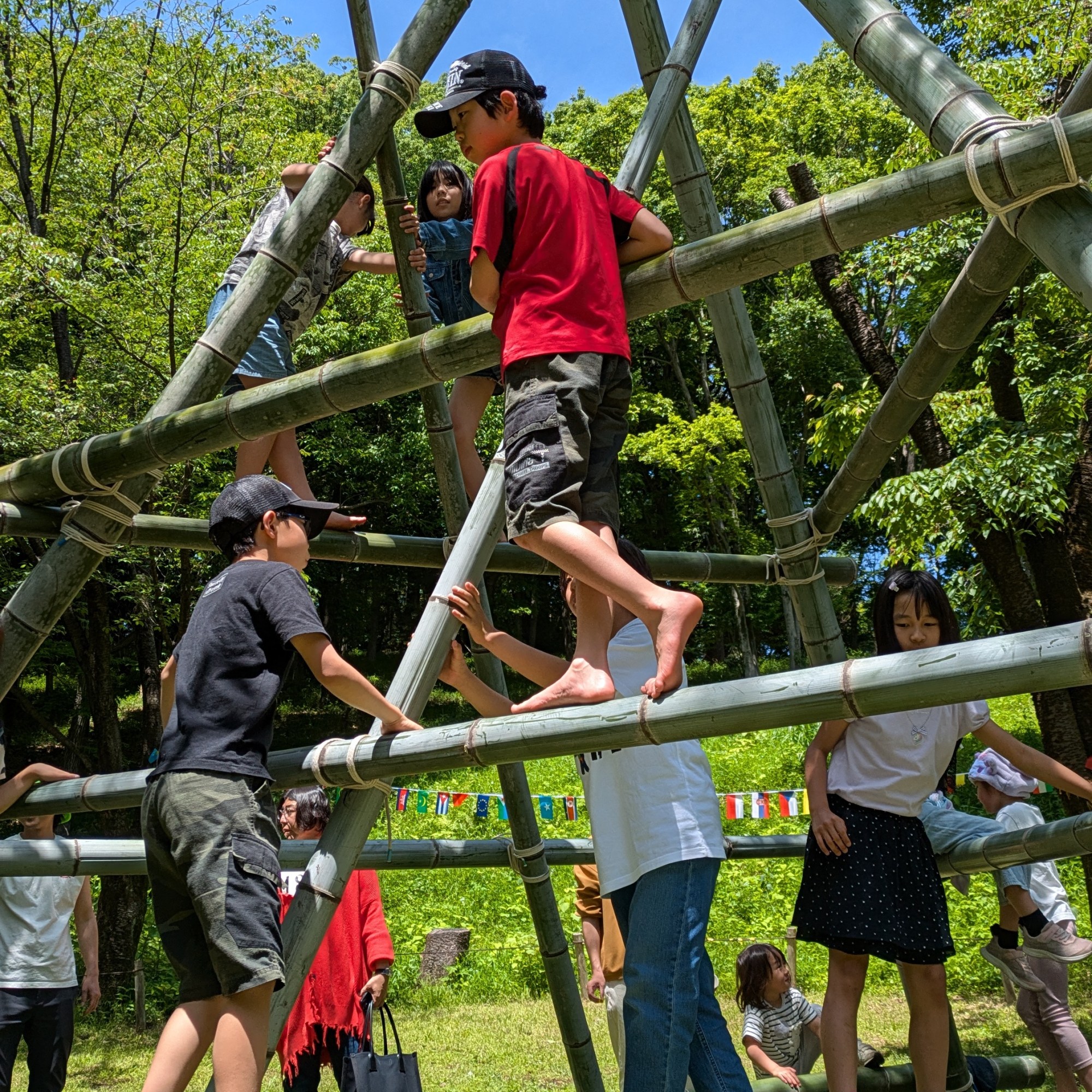 桜の広場には、高さ5メートルの竹のピラミッドを中心にハンモック体験、竹の弓矢のシューティングゲーム、竹トンボ・ぶんぶんゴマの色付け体験と飛ばし方(回し方)教室を開催。販売は綿あめ体験とポップコーンと子供たちに人気のアイテムをラインナップしました。会場でのお手伝いには、茅ヶ崎中学校おやじの会のメンバーが助っ人に来てくれて子供たちを楽しませてくれました。ご協力ありがとうございました。