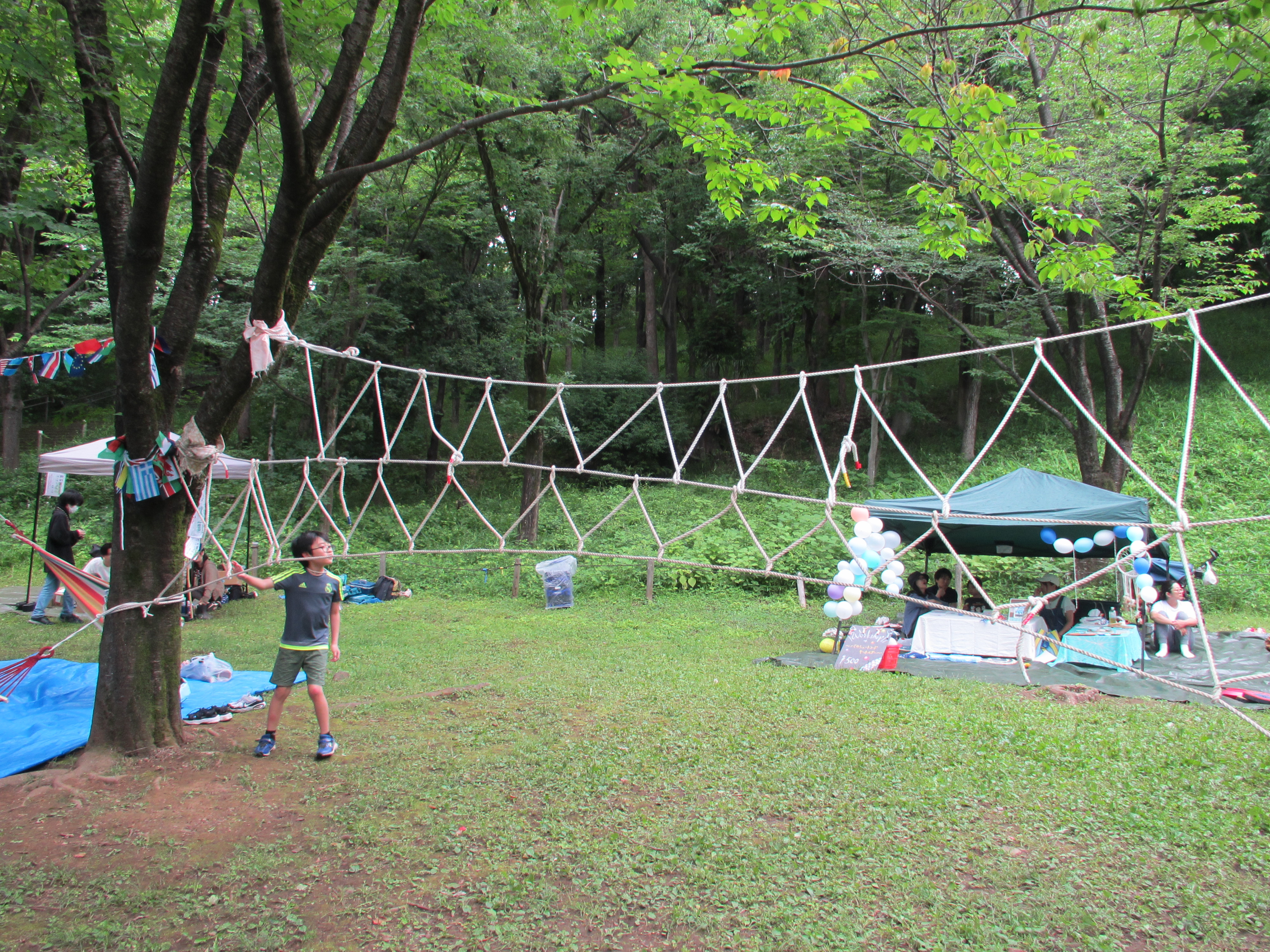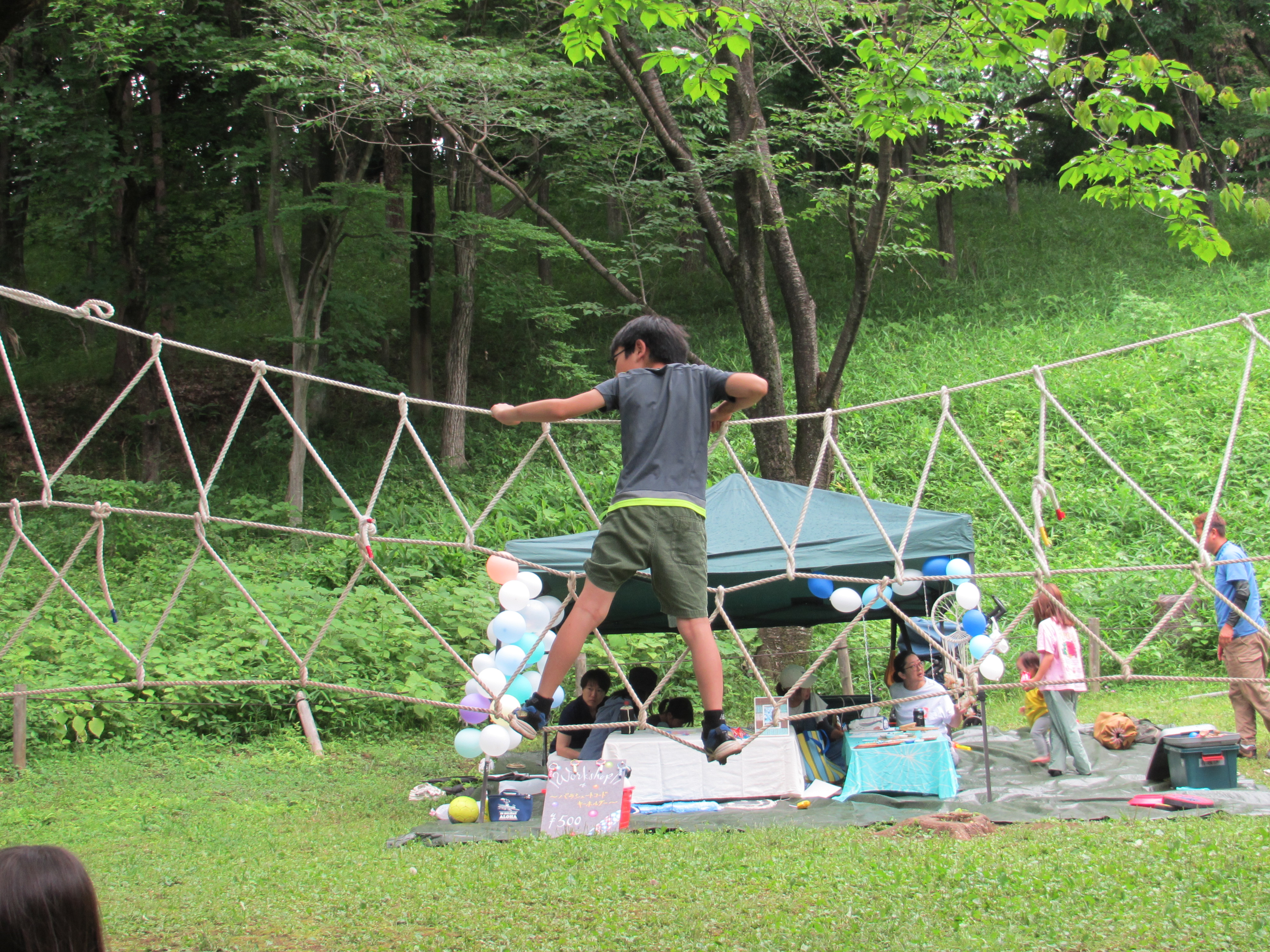 ラリーポイントは、竹割り 竹細工(竹灯籠)、ゴールにロープ遊具&竹ピラミッド ほか