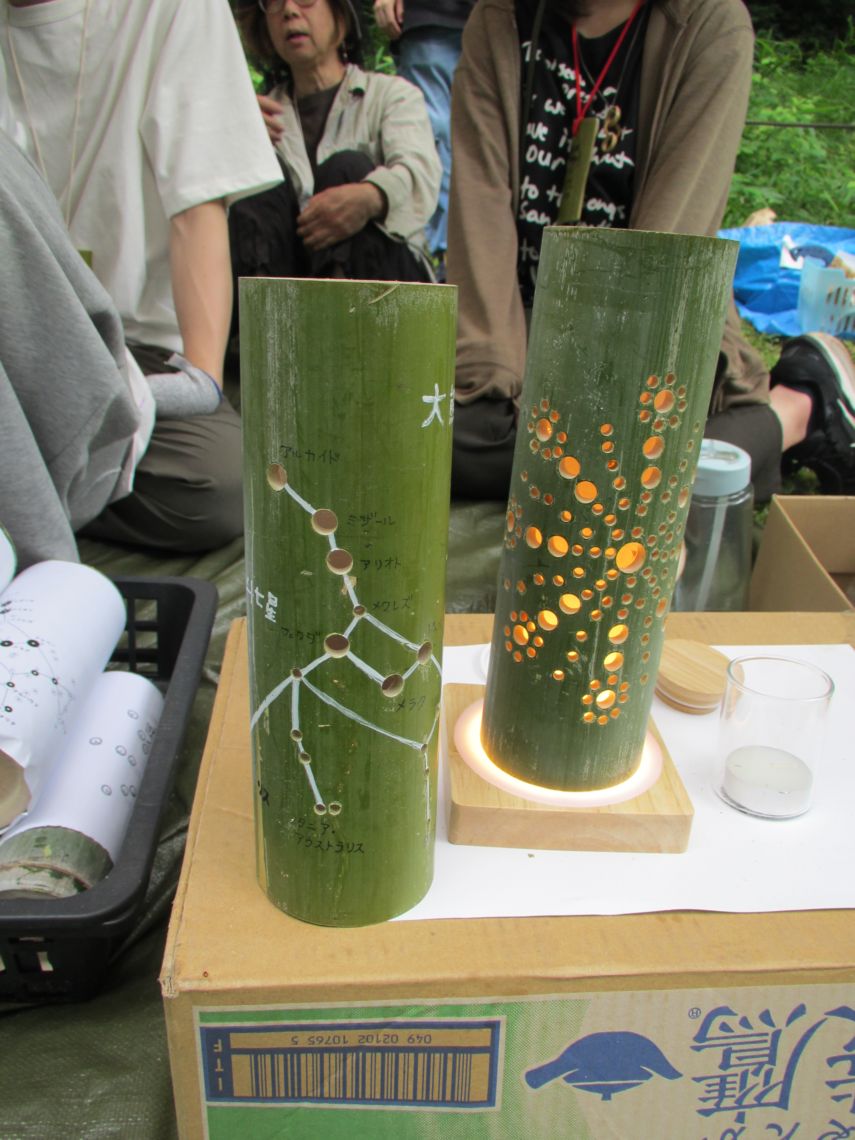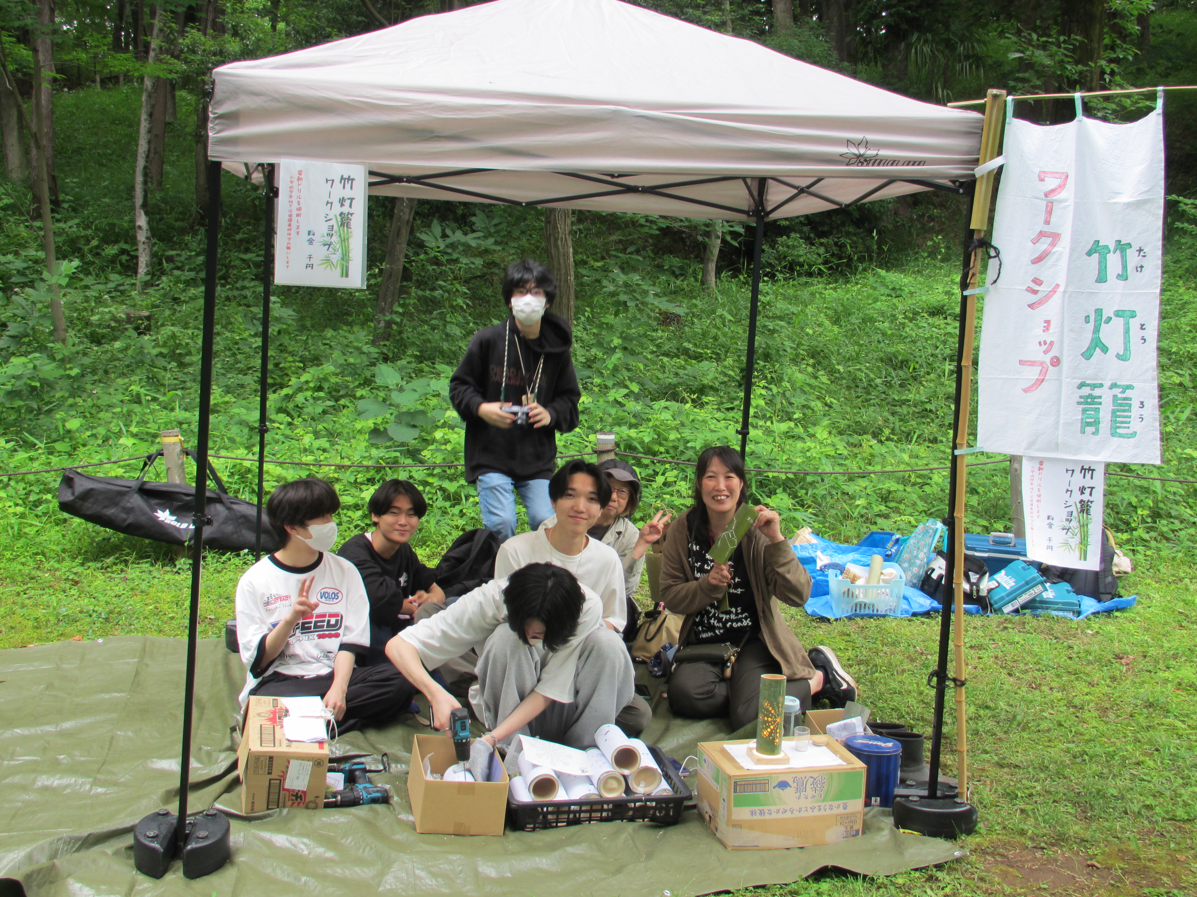 シューティングゲームと竹灯籠ワークショップ、竹細工販売