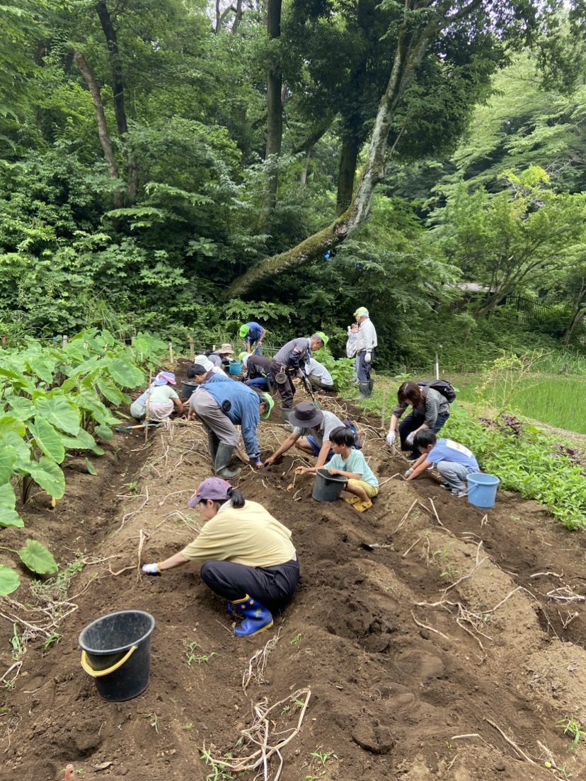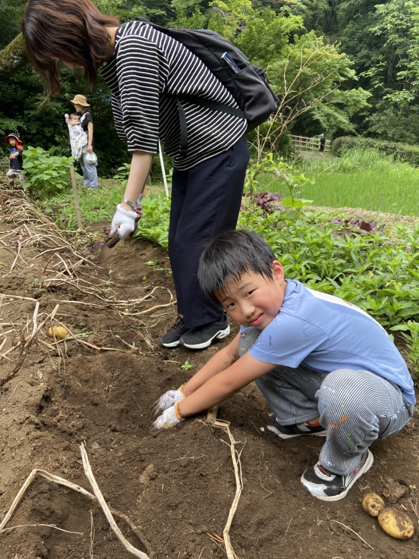 曇りがちで湿度が高く無風の十分に体がダルくなるような空模様で、9家族および10名のサポーターの参加とともにジャガイモ掘りを実施しました。