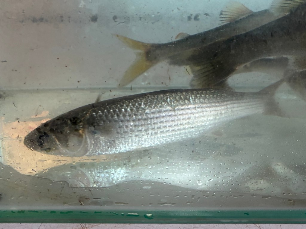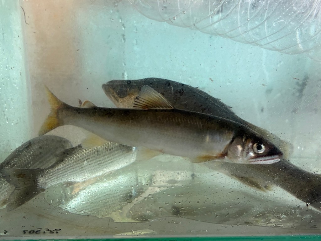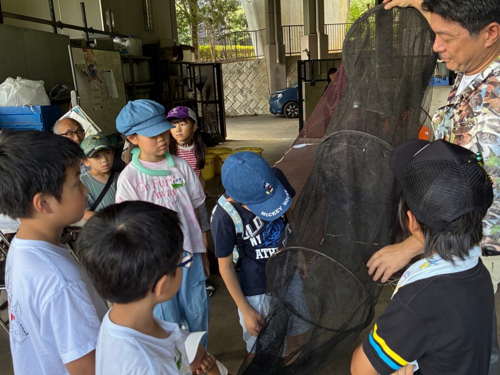 ザリガニ釣り終了後、大池や早淵川で採れた魚を観察しながら、講師より、説明がありました。また小型の定置網を使った魚の取り方等について解説がありました。 T.N.