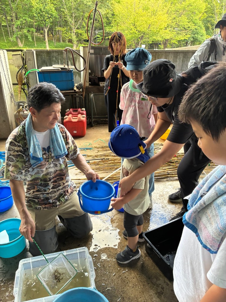 お魚の説明と、定置網を流れのどっち向きに置くか、みんなで考えたね。