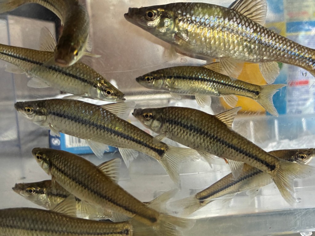 大池で採れた生き物と早渕川で先生が投網で採った生き物。