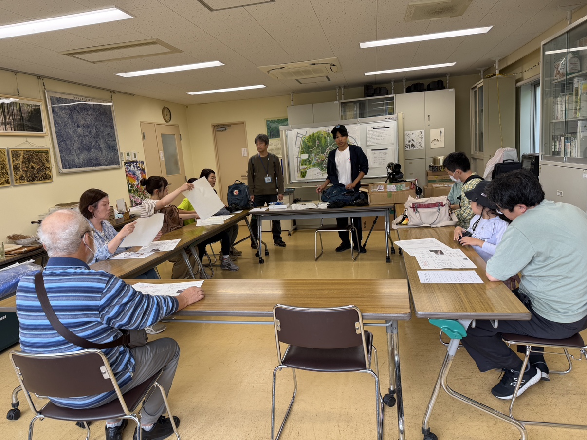 天気は晴れ、参加者10名で観察会を開催しました。レストハウスの前で、講師より双眼鏡の使い方の説明を受けました。これでバッチリ!さあ野鳥を探そうと意気込んで、公園に出かけました。