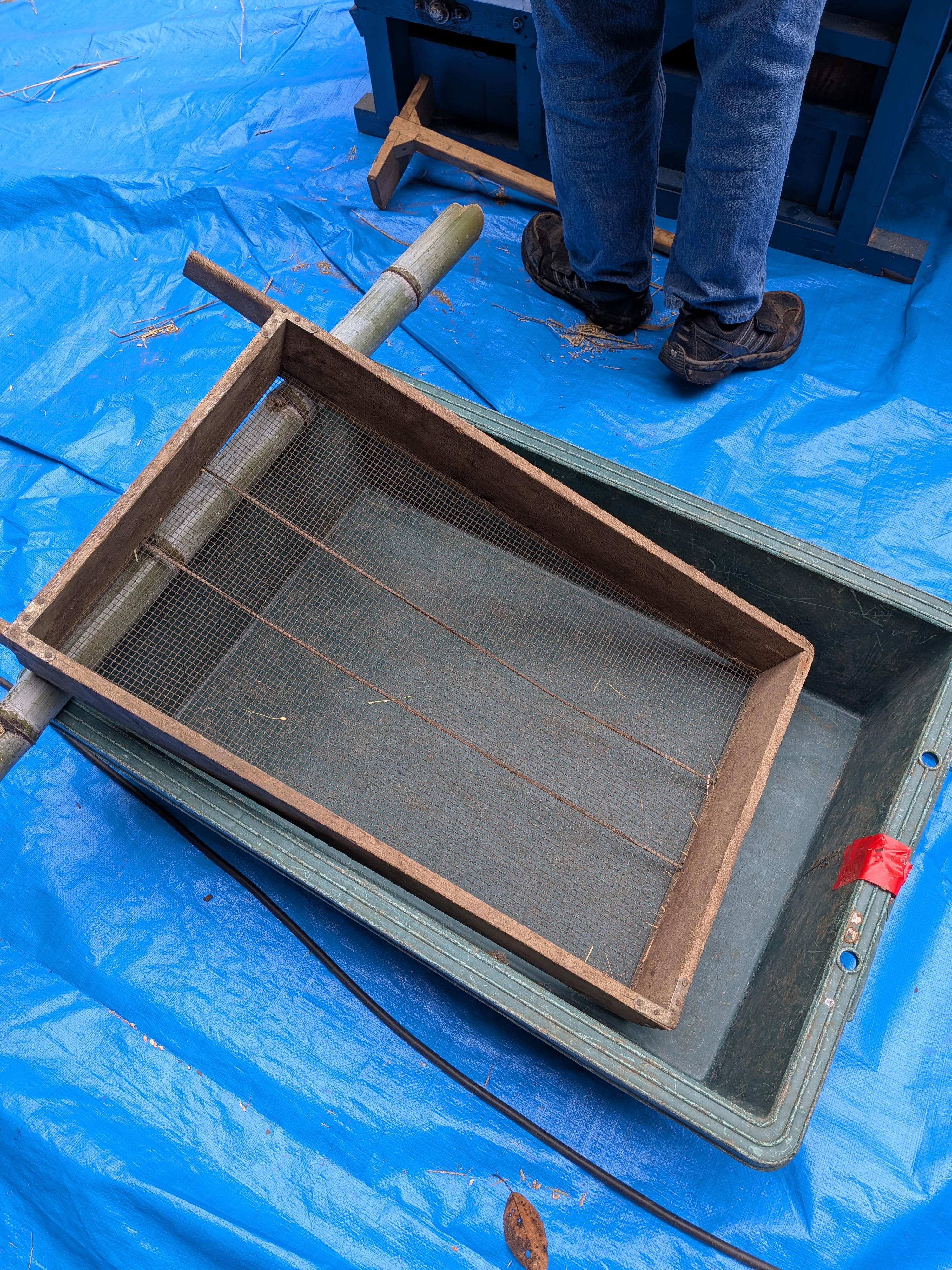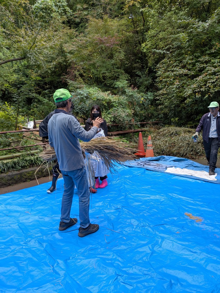 さあ次は残ったわらでこもを編むよ。