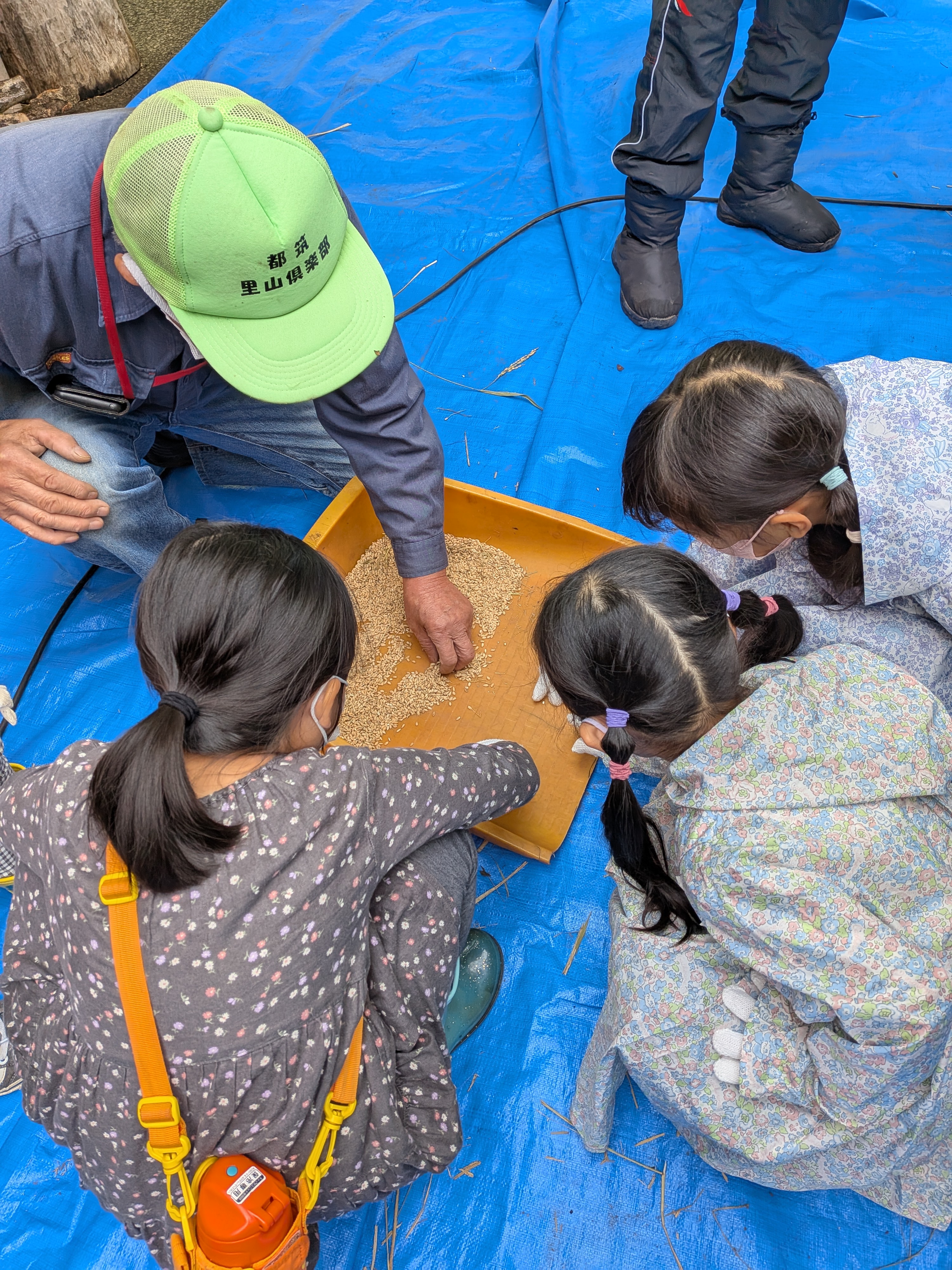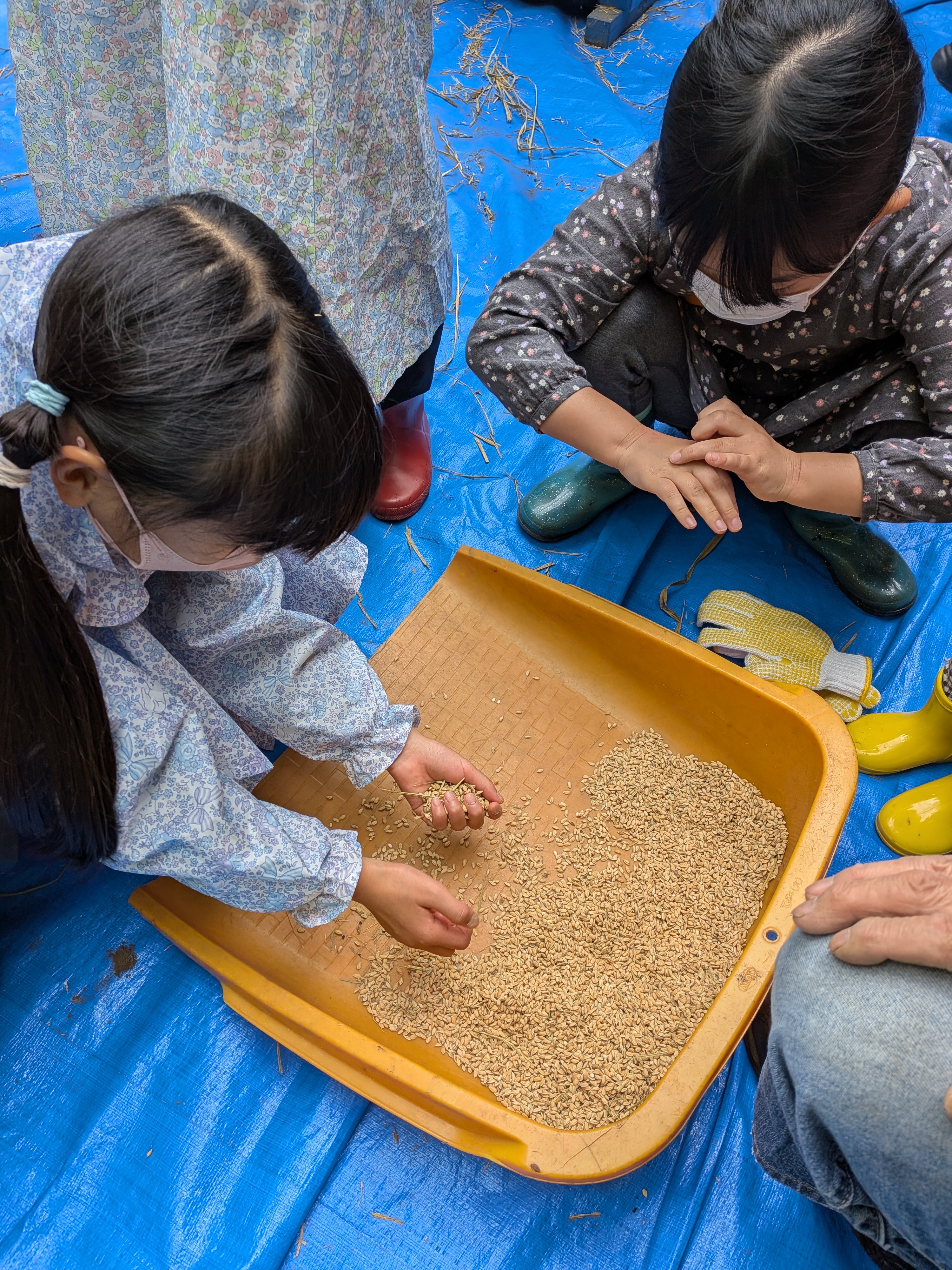 初めての脱穀作業と、自分達で作ったこも編みとみご帚のお土産と、楽しい体験学習でした。 M.S.