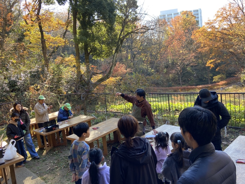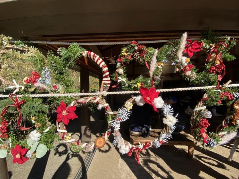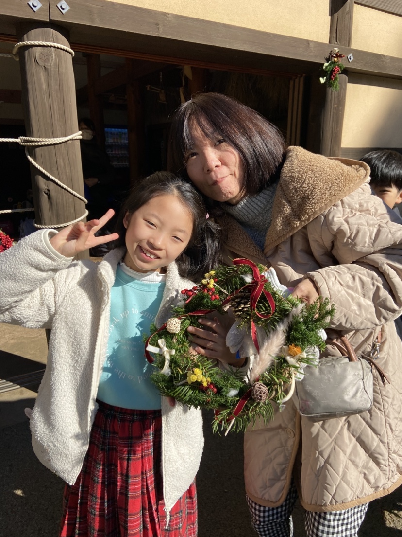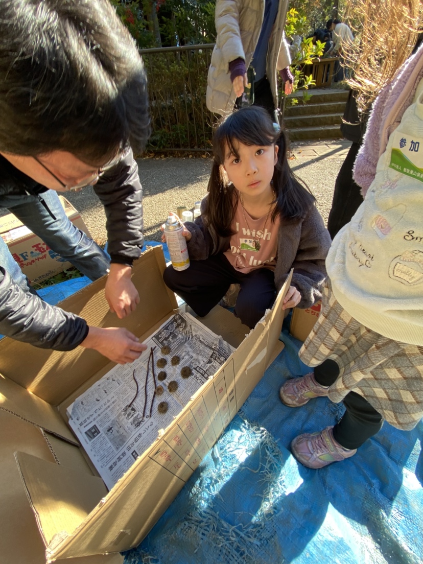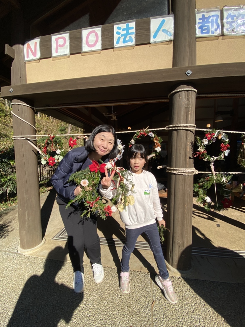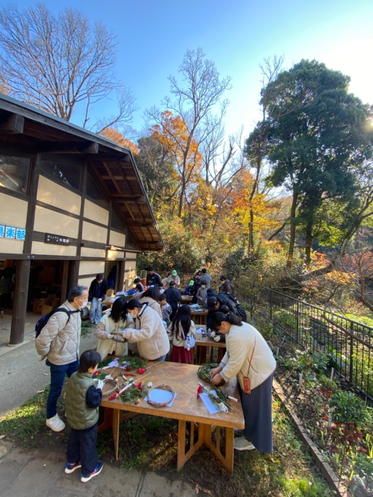 雪の便りも届く冬らしく寒い日にクリスマスの準備、リース作りを行いました。園内で集めたクズの蔓、緑豊かなモミの枝、松ぼっくり、クヌギの実に加えてクリスマスらしいナチュラル系の飾りを使ってリースに仕上げていきます。