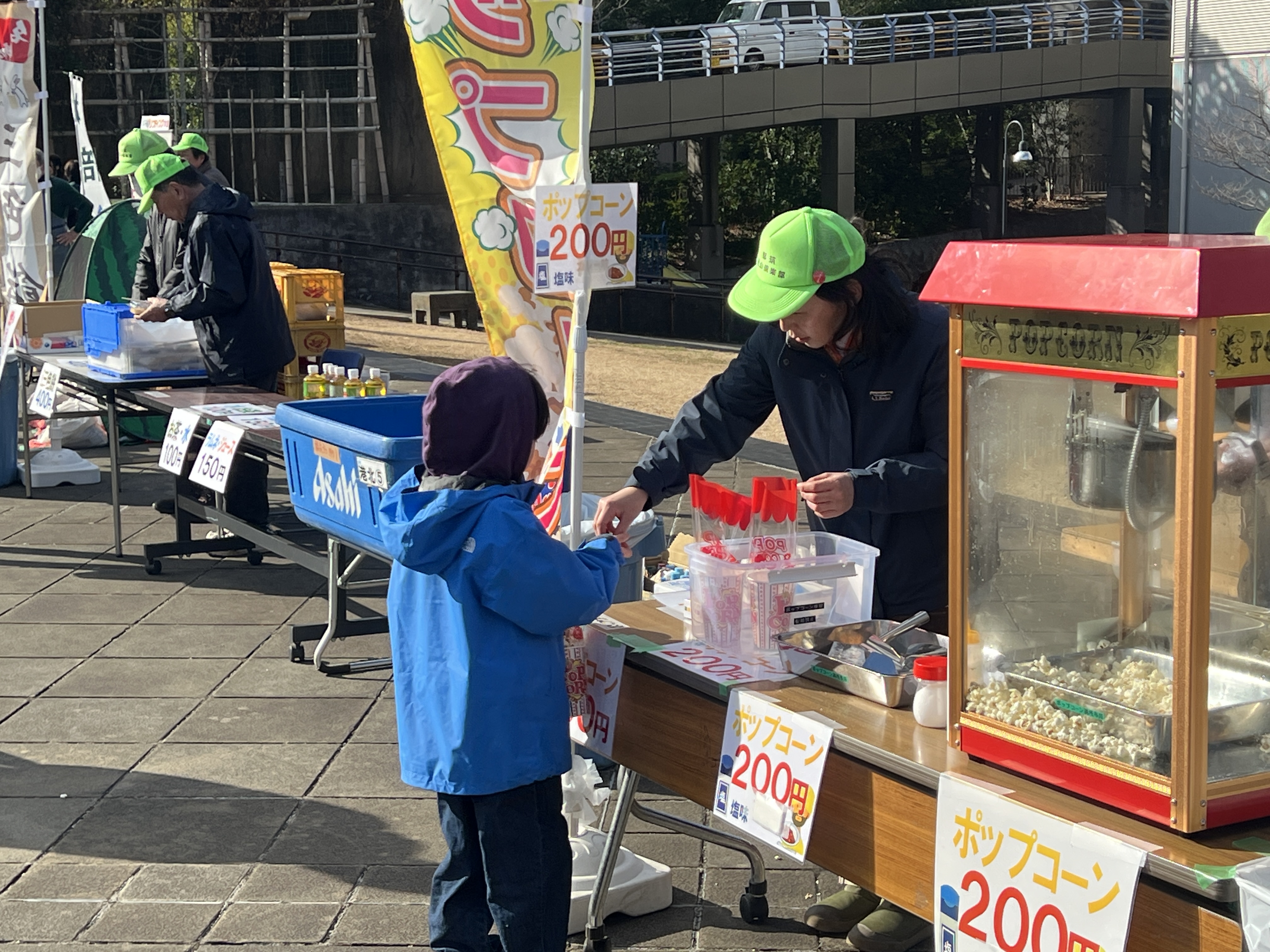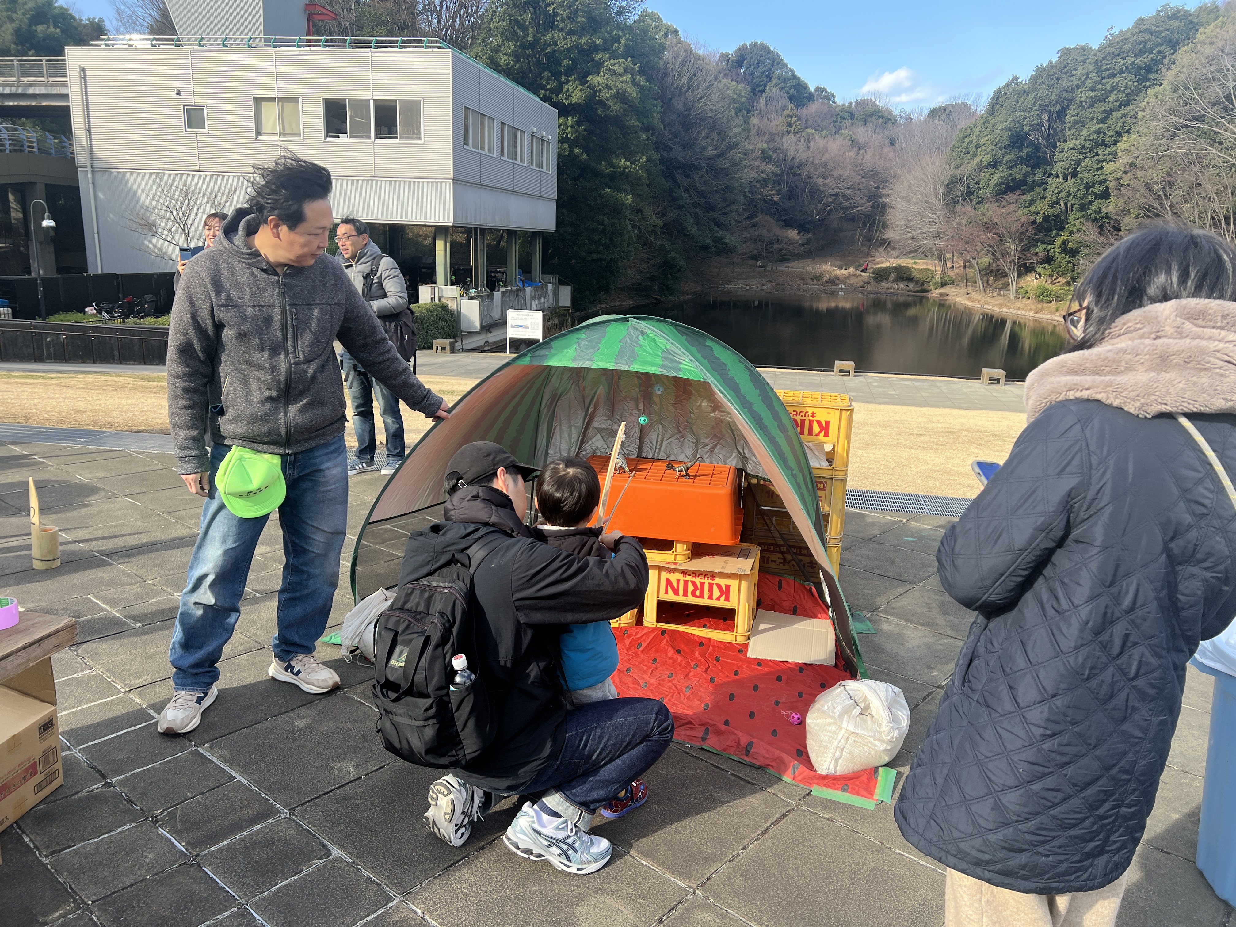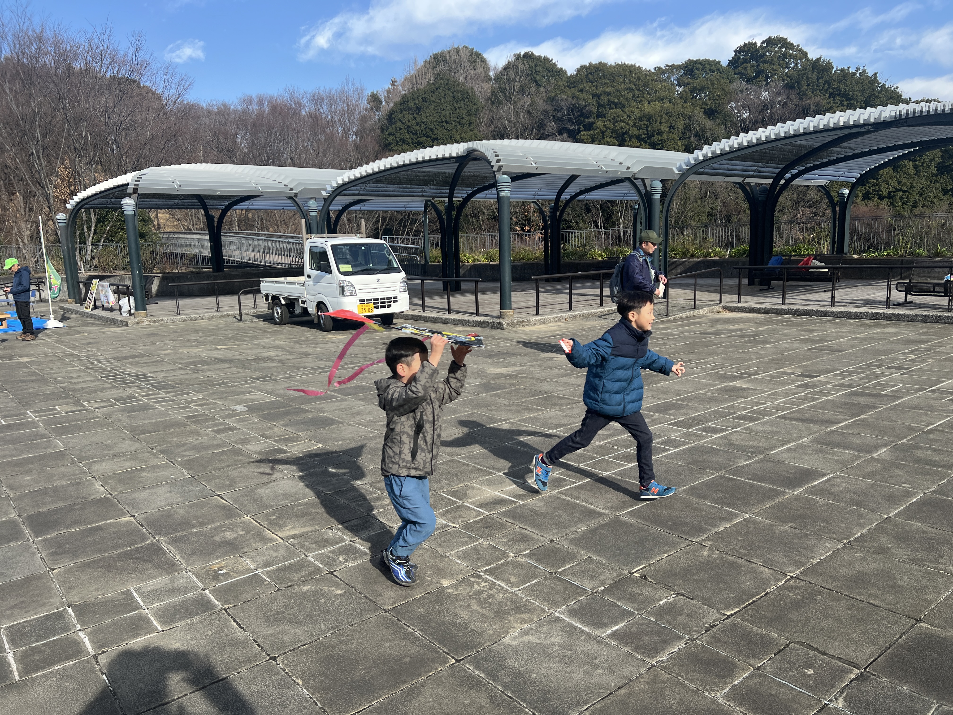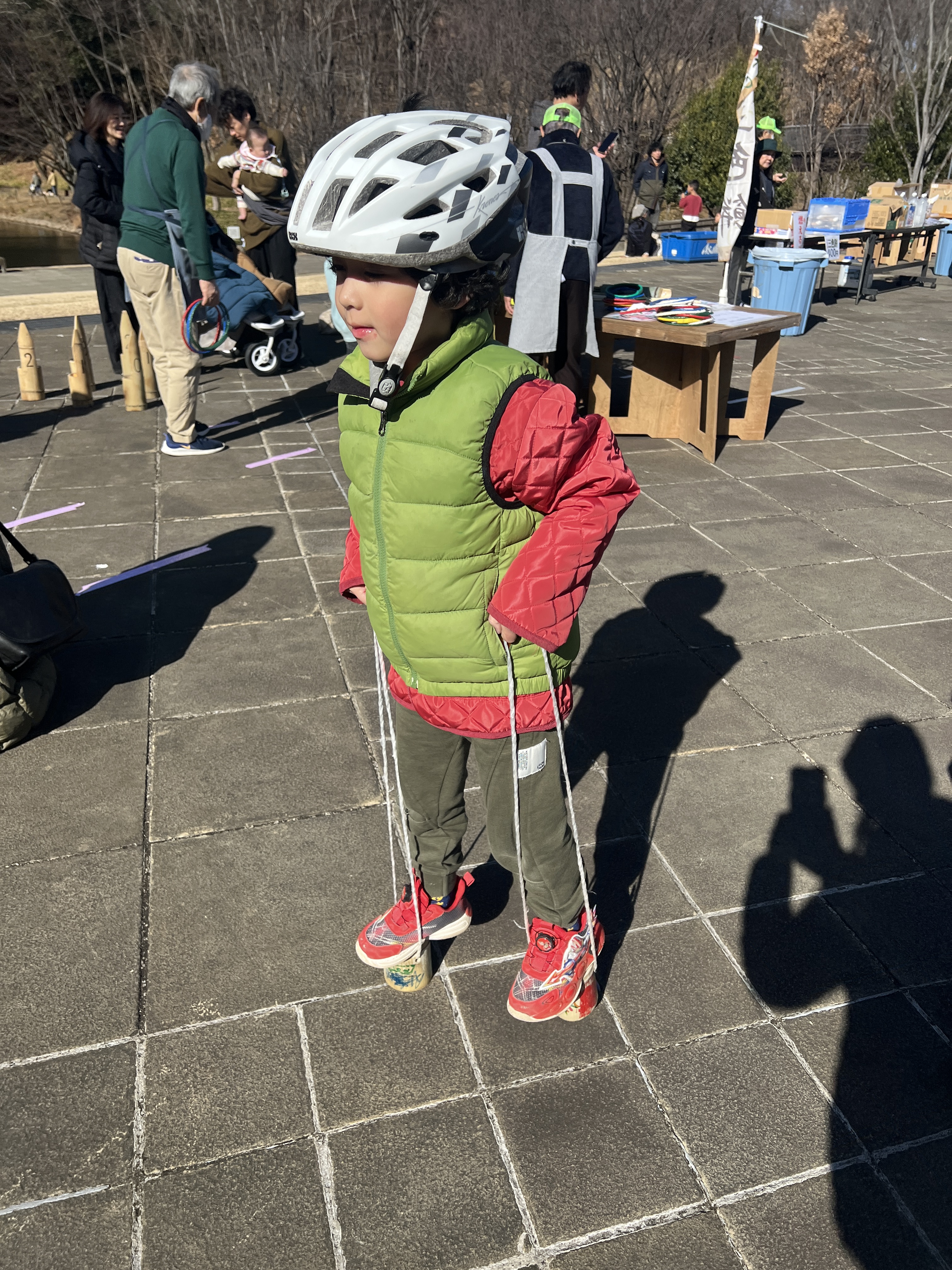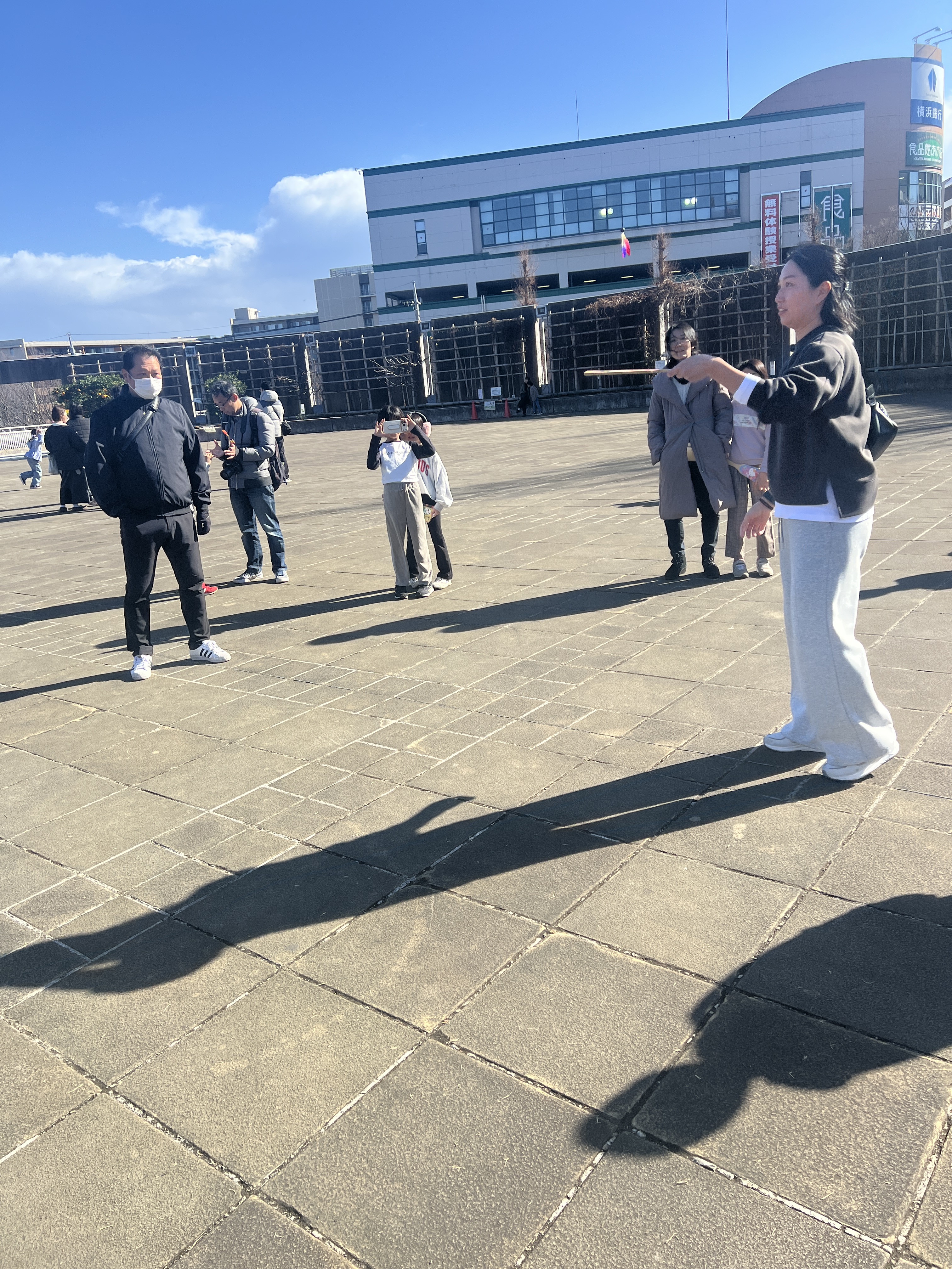 寒風吹く冬の日、昔懐かしい外遊びを楽しみに多くの親子が集まりました。凧上げは不動の人気アイテム、手に取るとすぐに走り出す子供たち。寒さもおかまいなし!の風景があちこちで観られました。