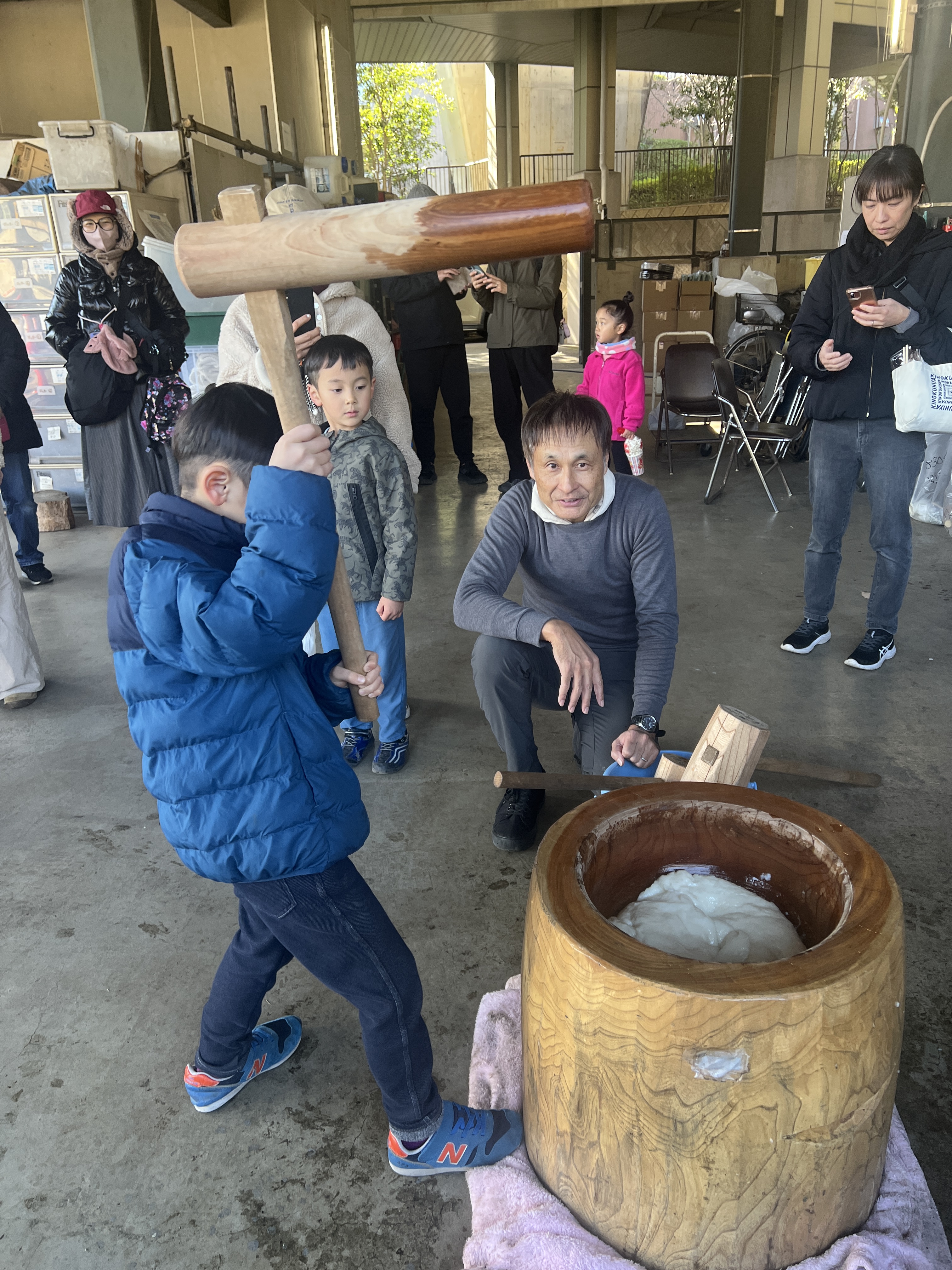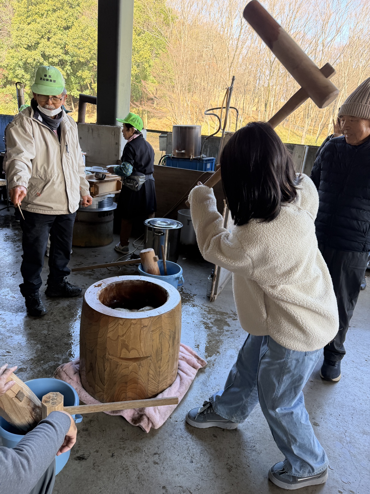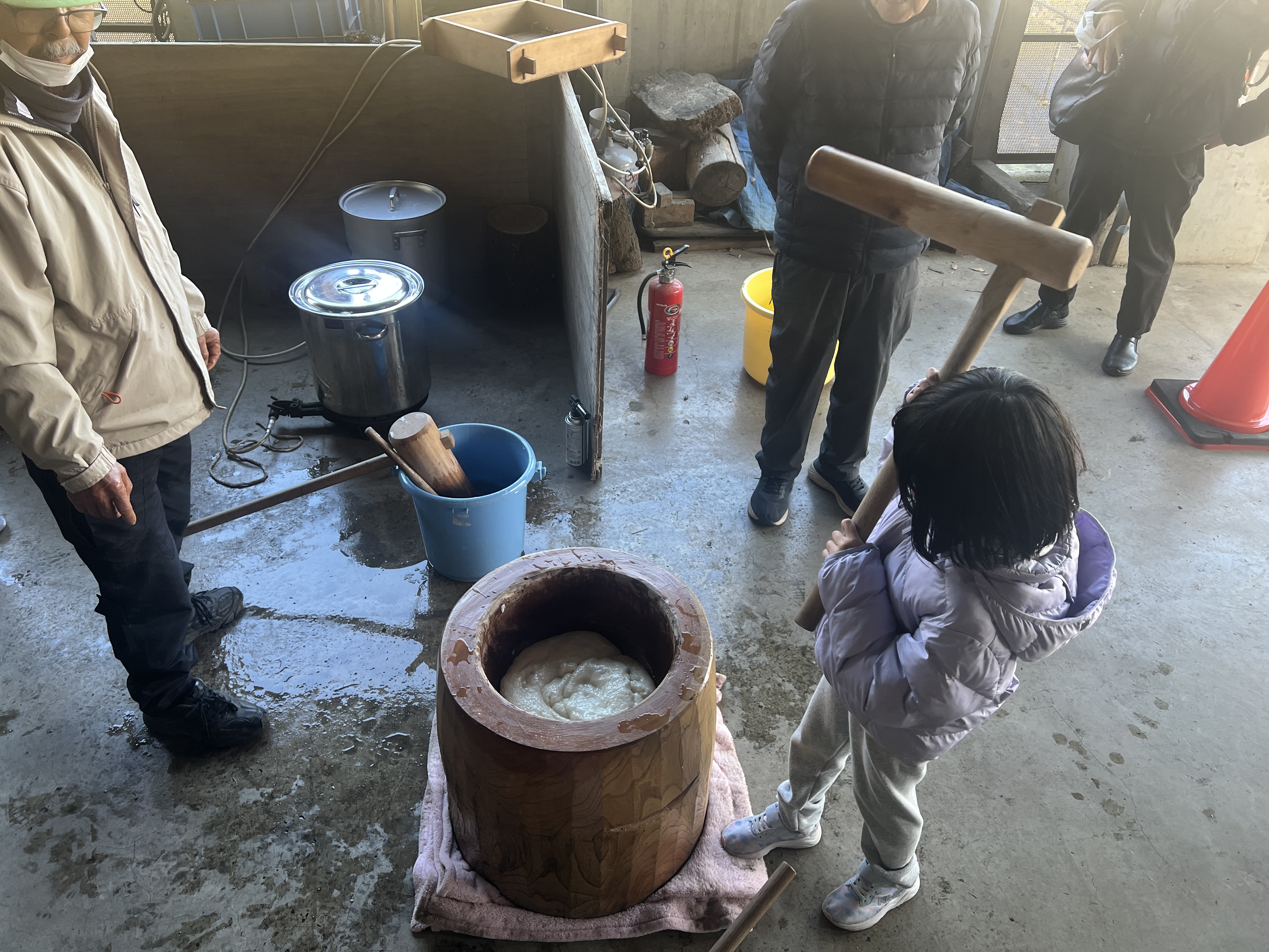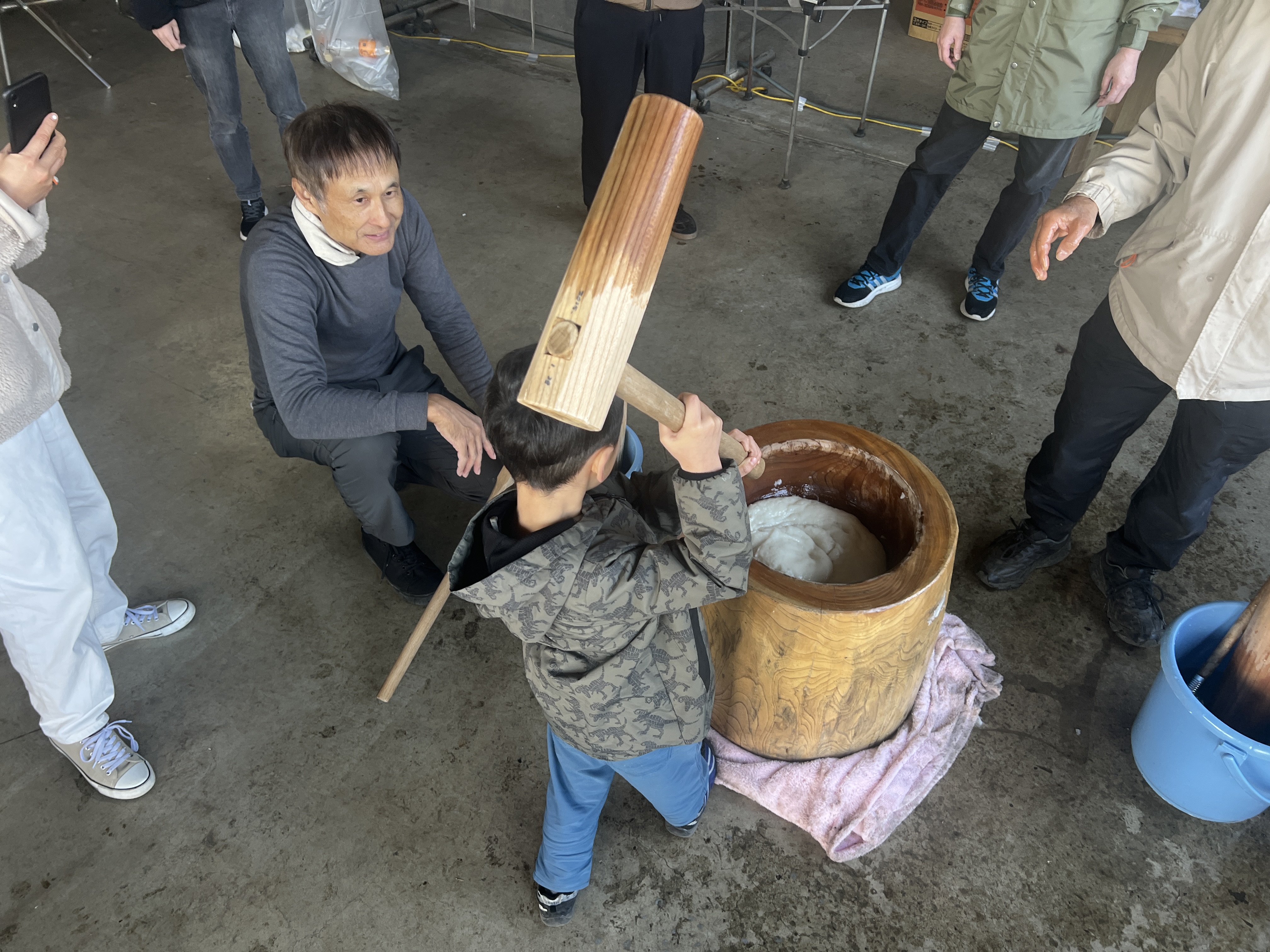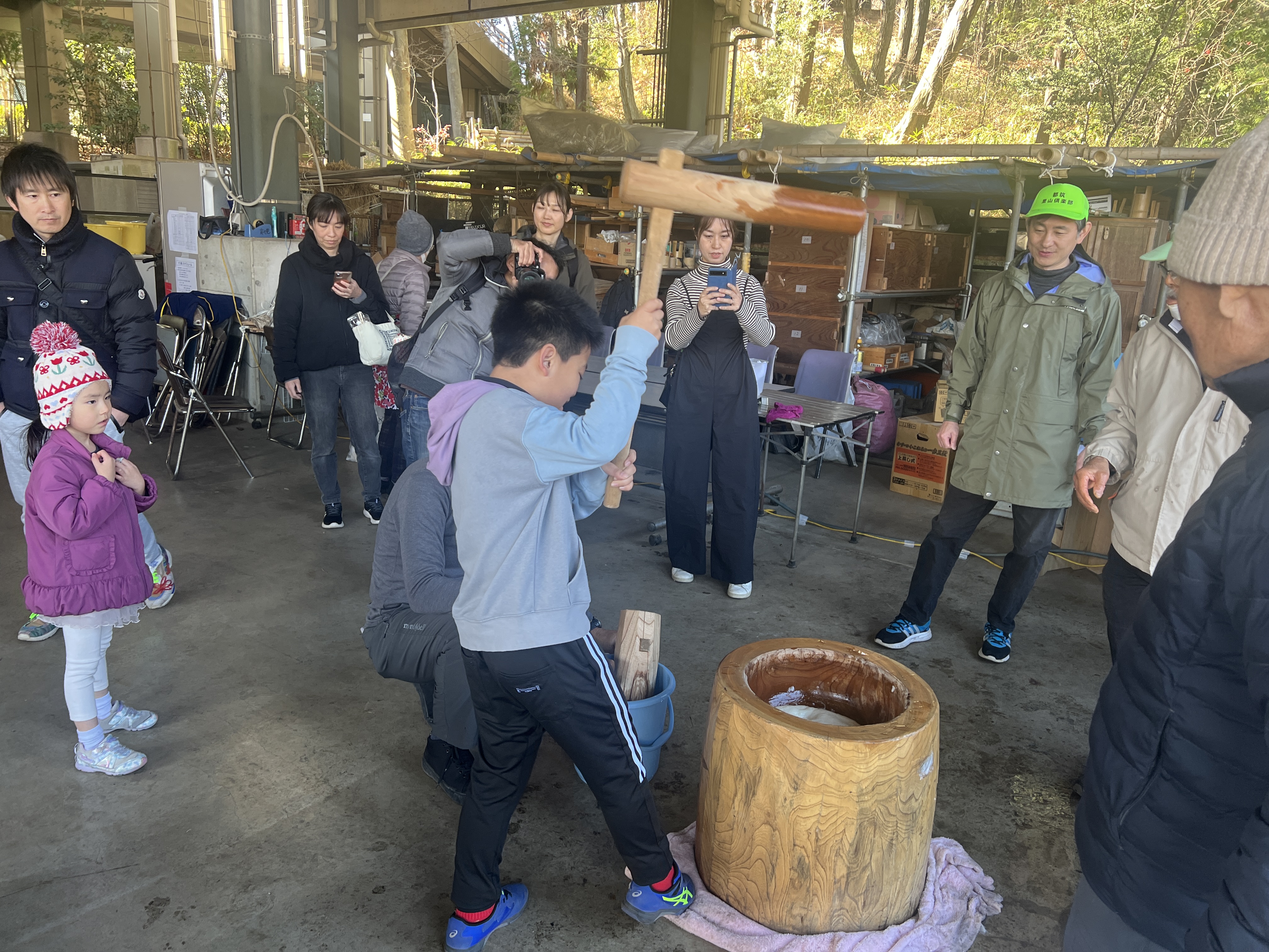 さあ、力試しの餅つき。