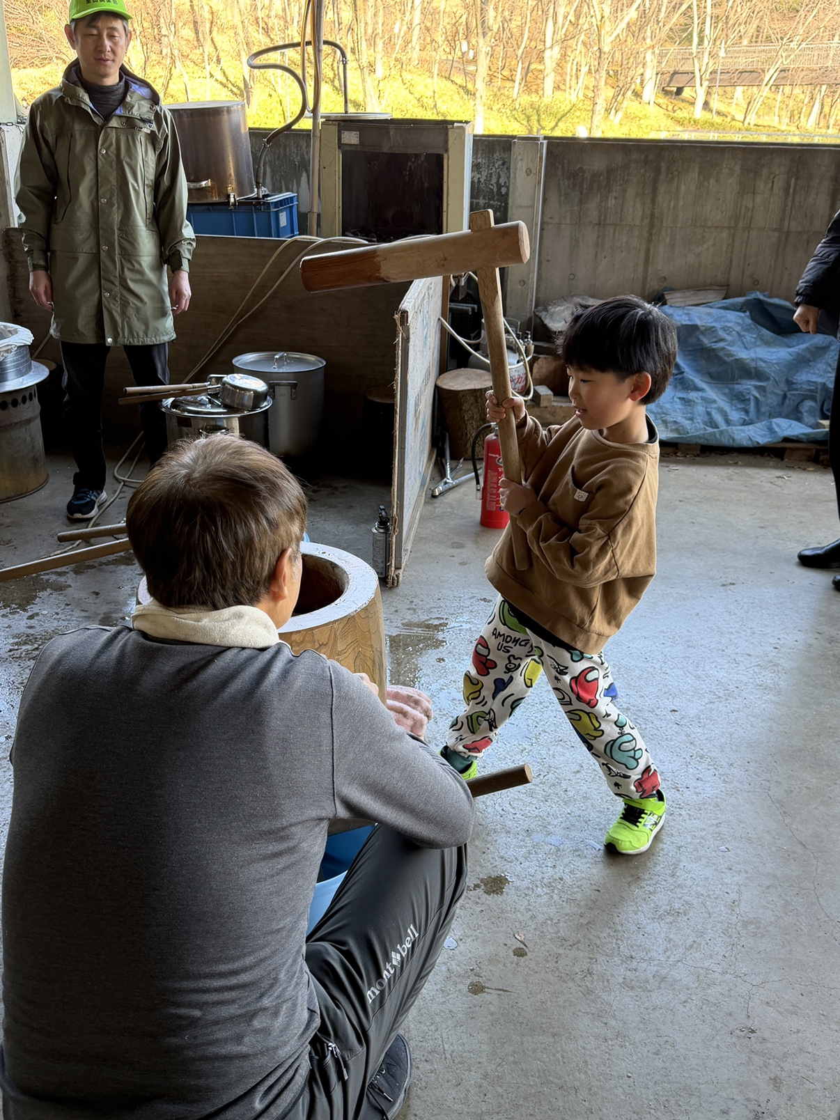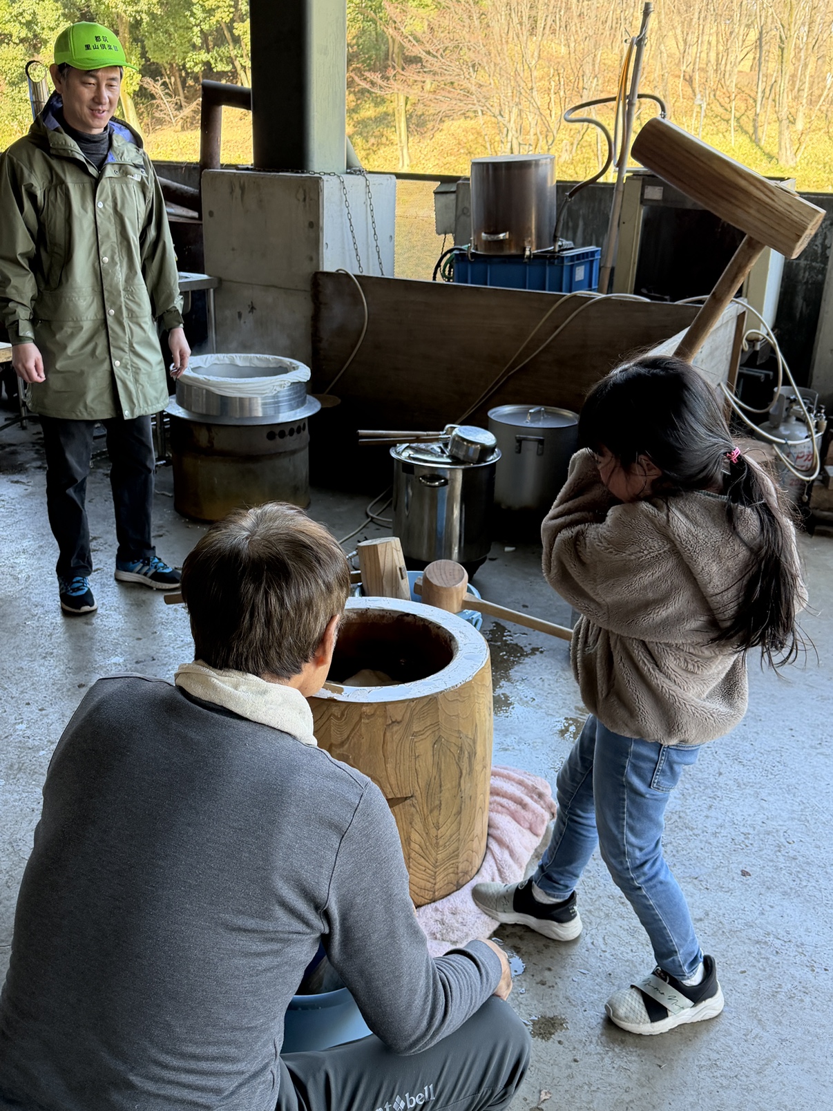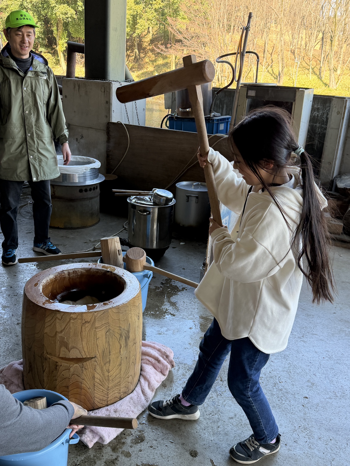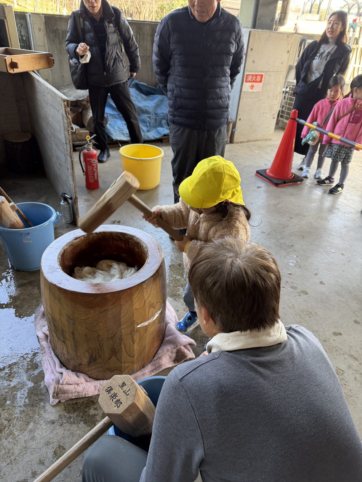 さあ、力試しの餅つき。