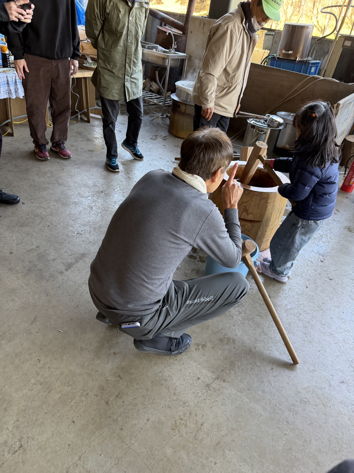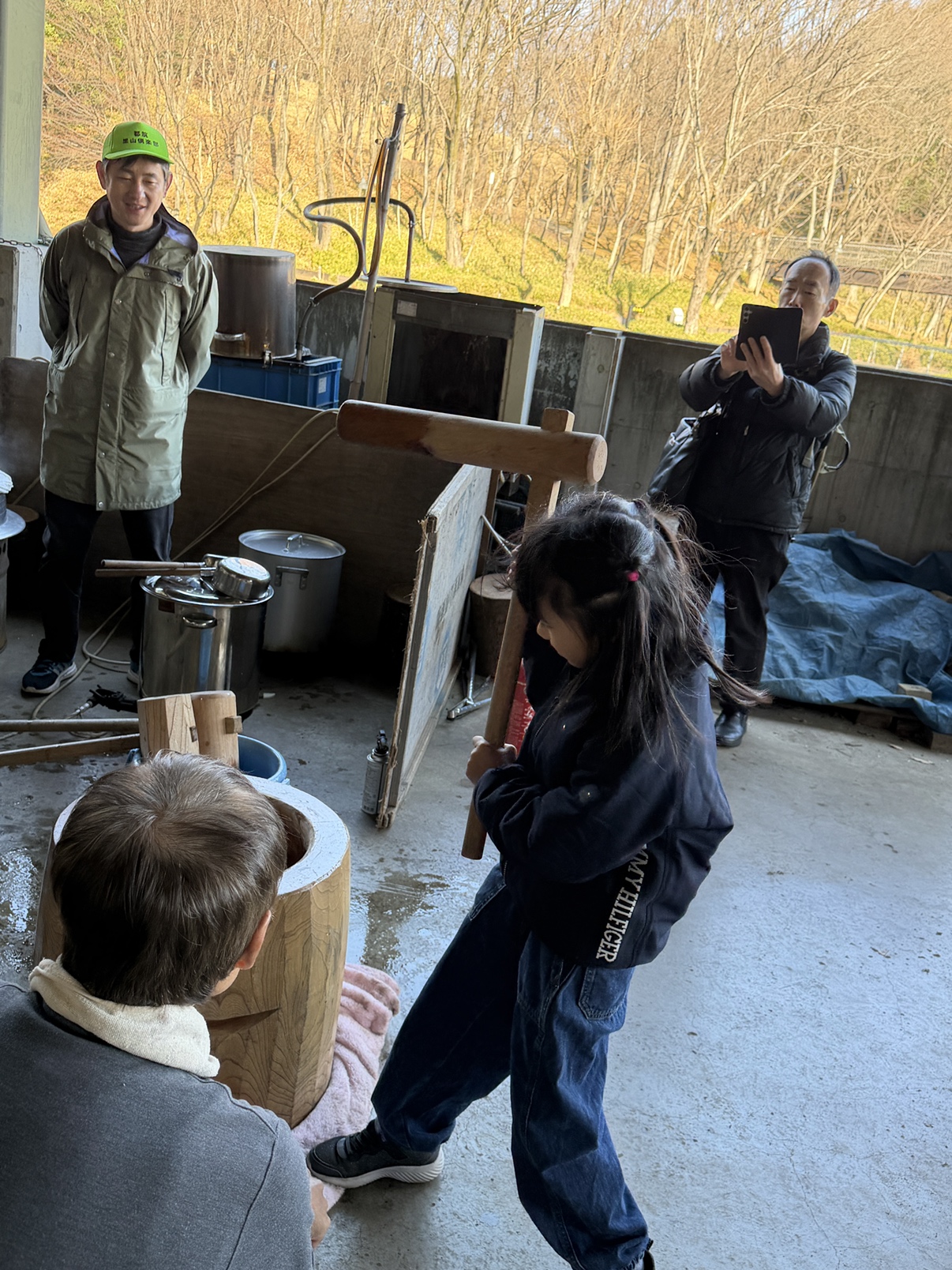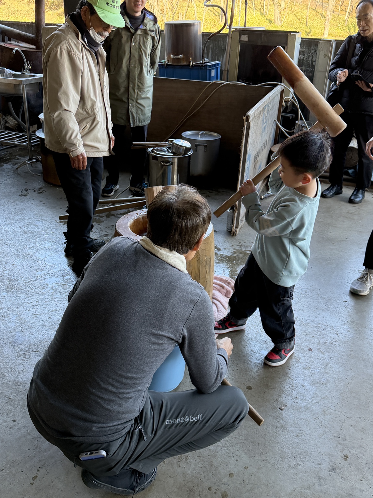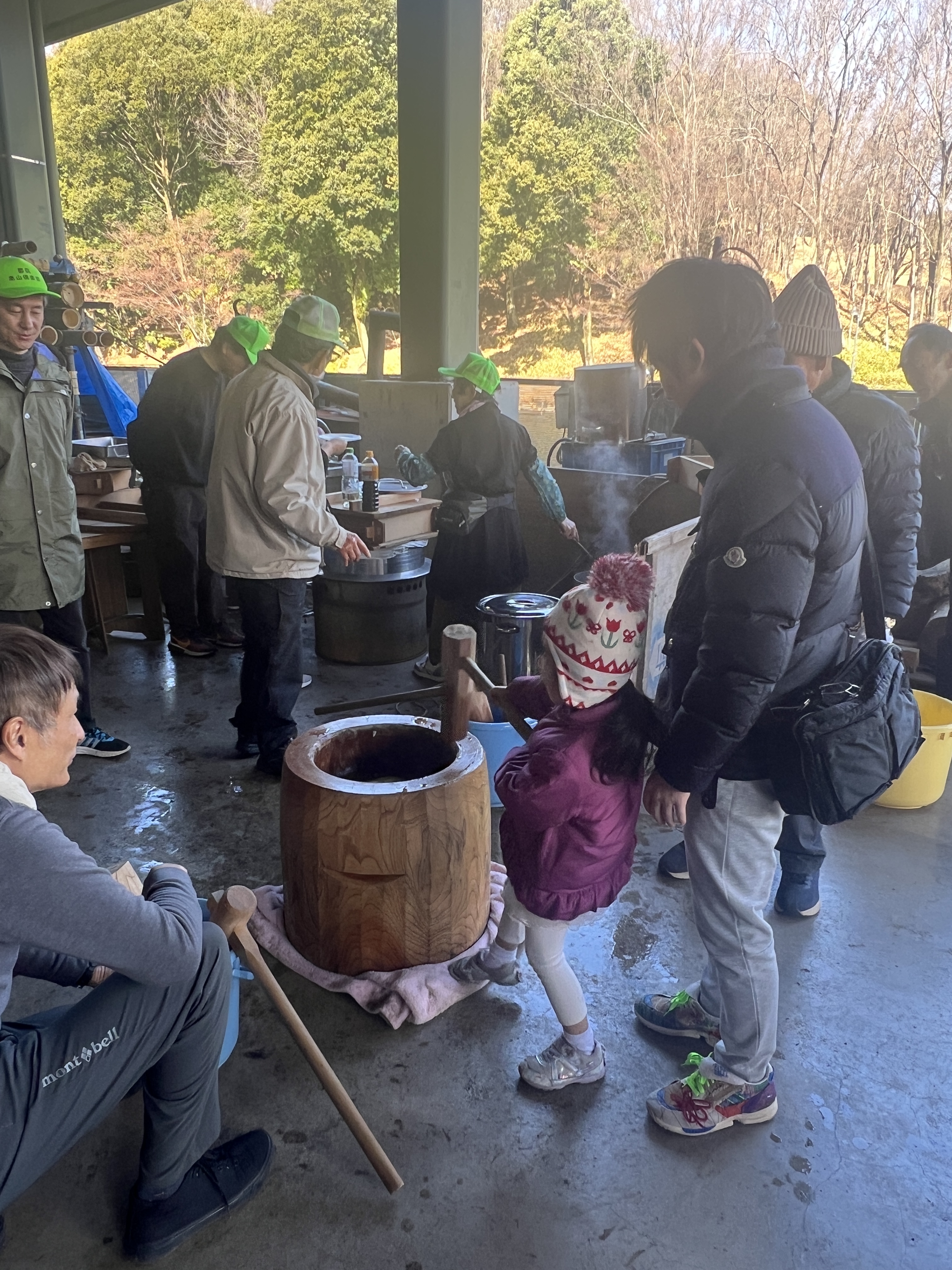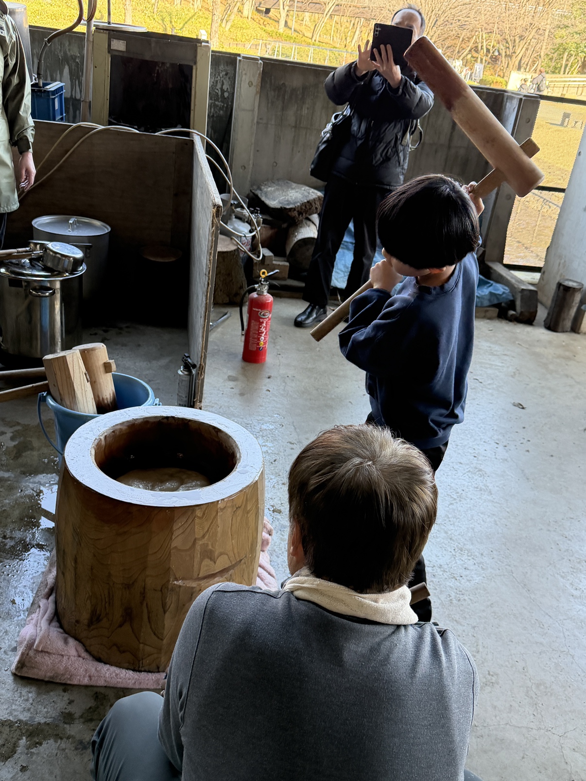 さあ、力試しの餅つき。