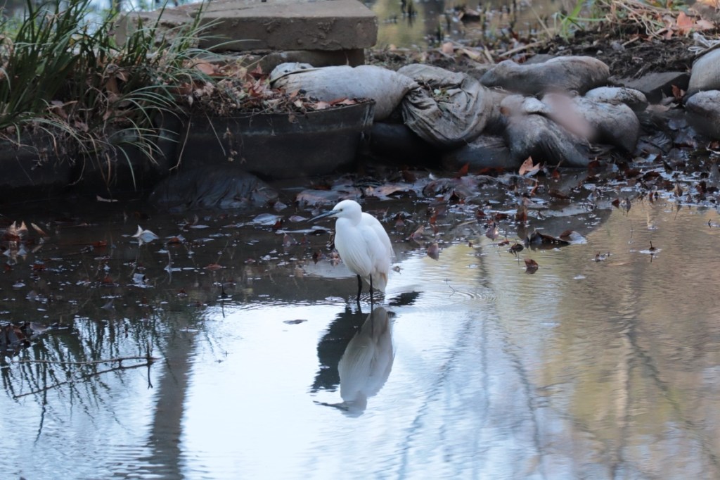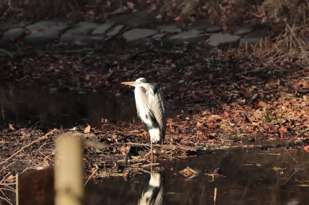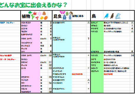 公園内を歩きながら、みんなで、設置されたトレジャースポットパネルを探します。あっ、あった!何がいるかな?何が見える?キョロキョロ探すと、アオサギが池の中にいる、メジロが木に留まってる、ワビスケの花が咲いてる、大きなマツボックリがいっぱい落ちてるなど、続々とお宝を見つけ、お宝シールをペタペタと張りました。