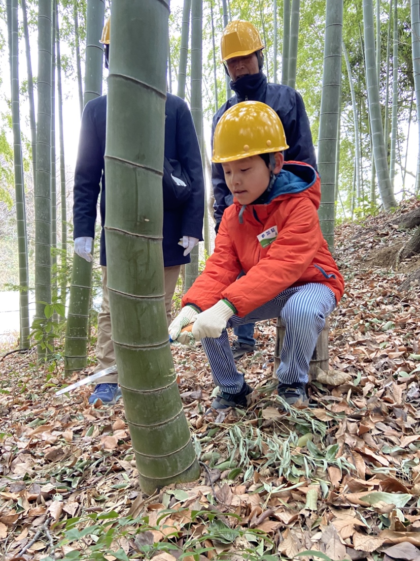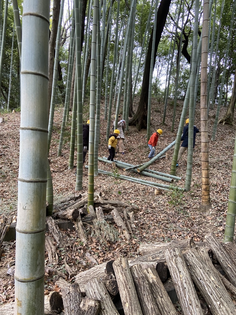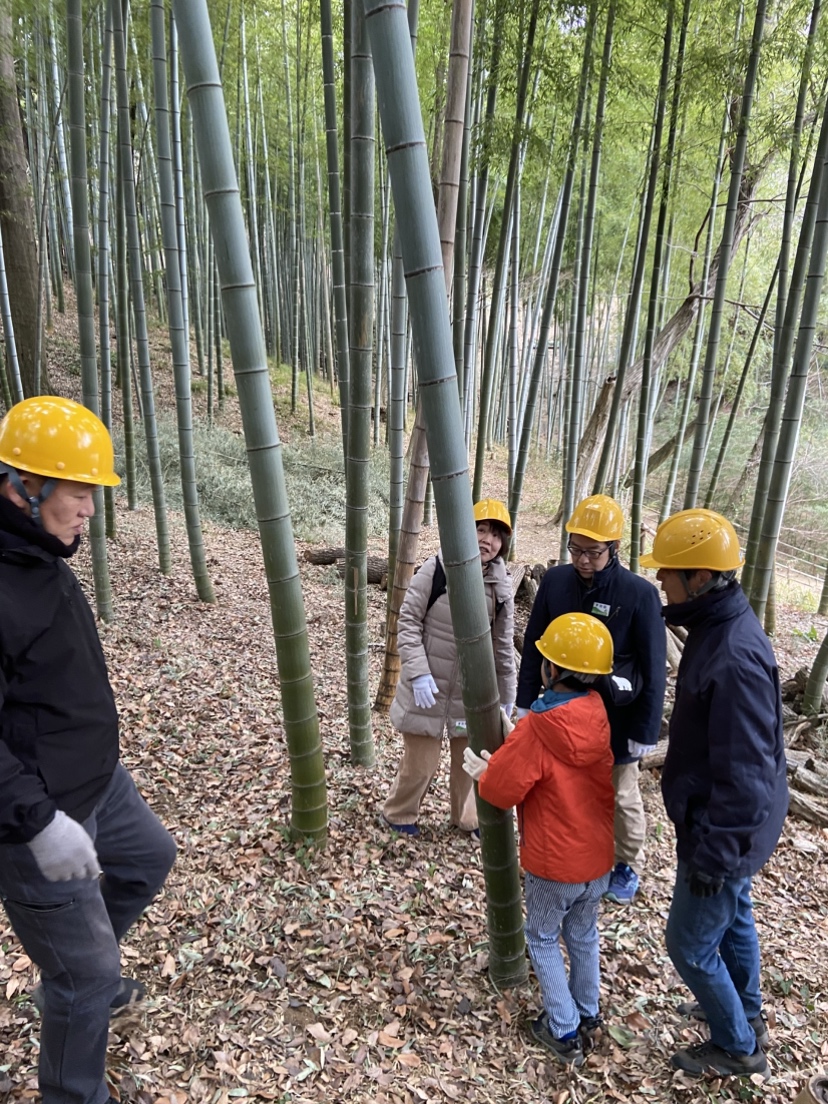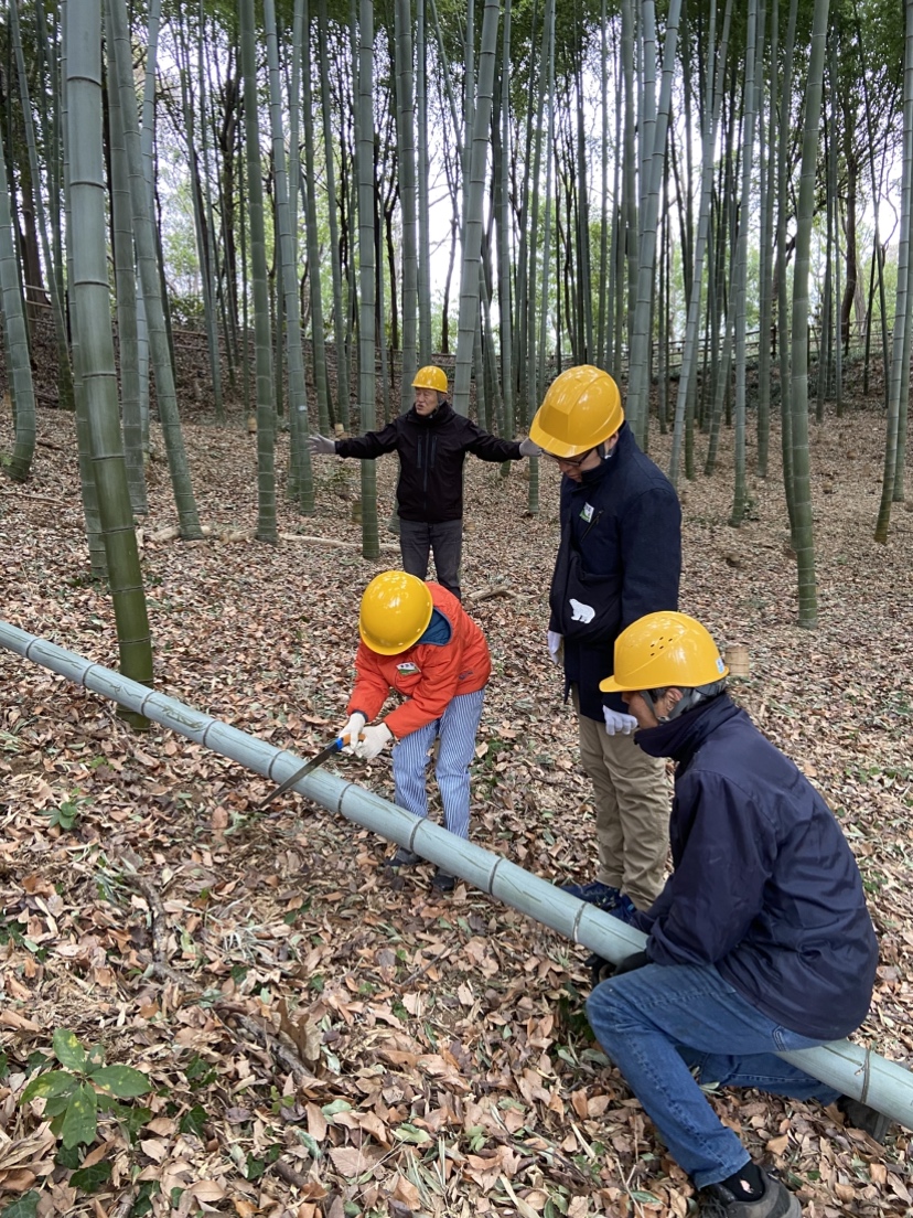 説明の後、竹を間伐