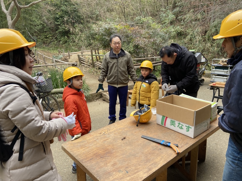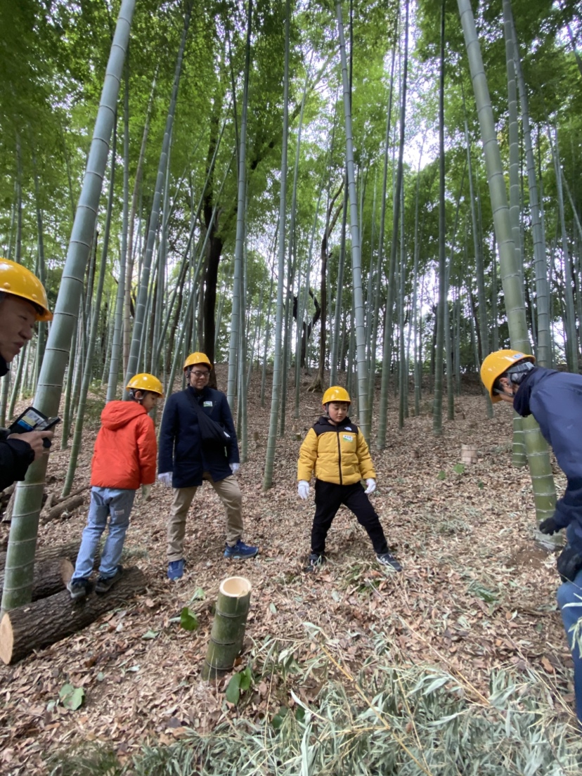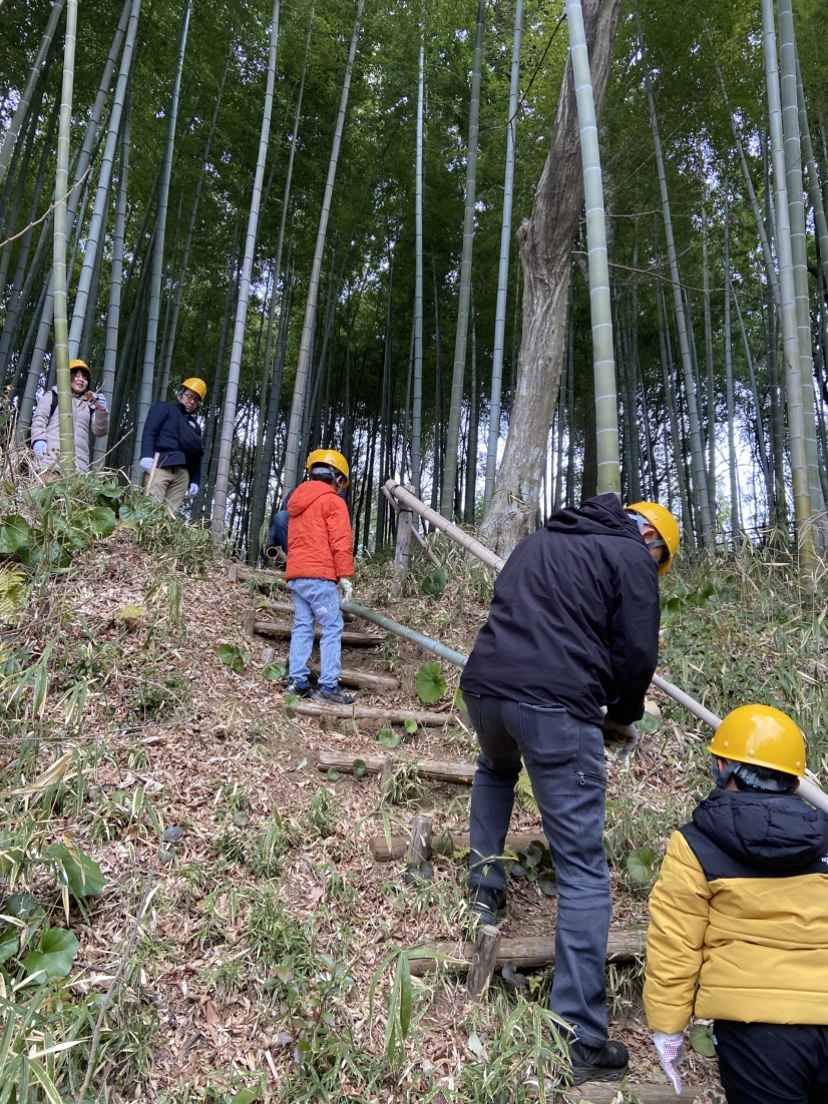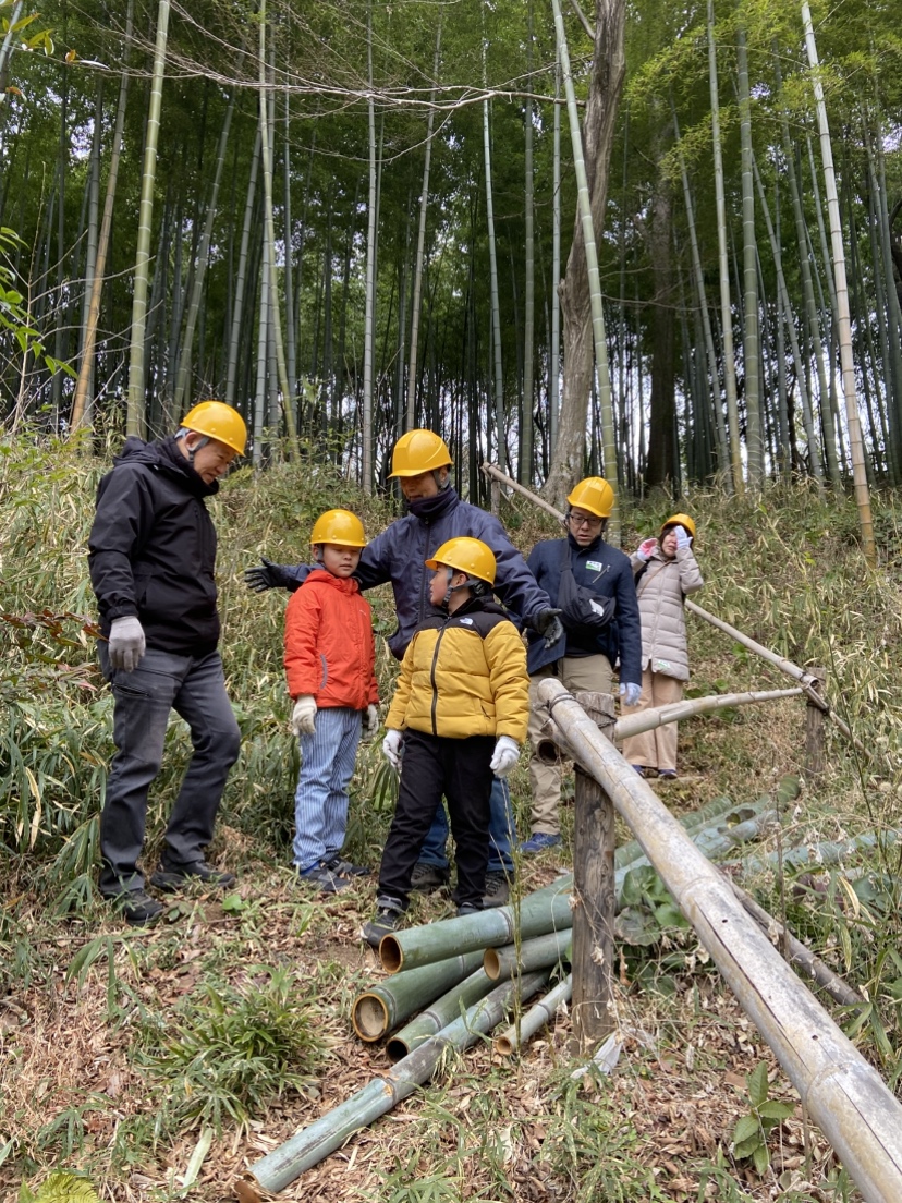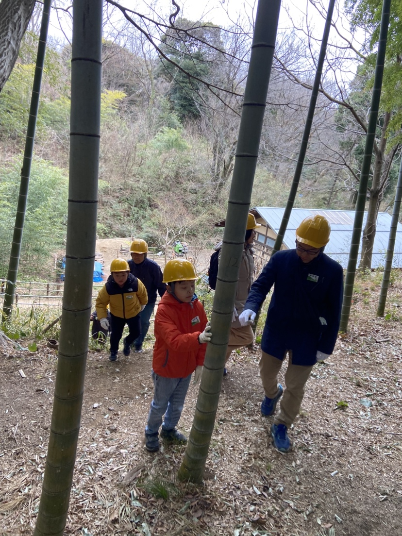 説明の後、竹を間伐