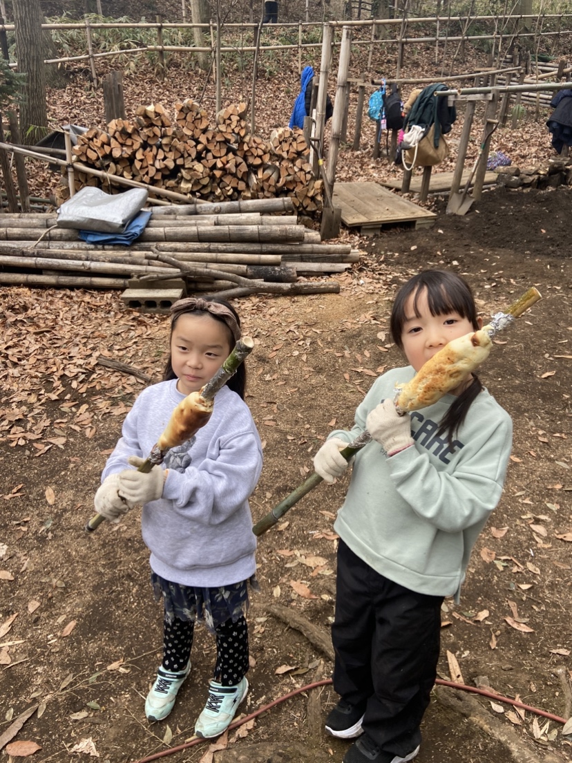 そして最後は、森の切り株、バームクーヘン作りに挑戦だ~。