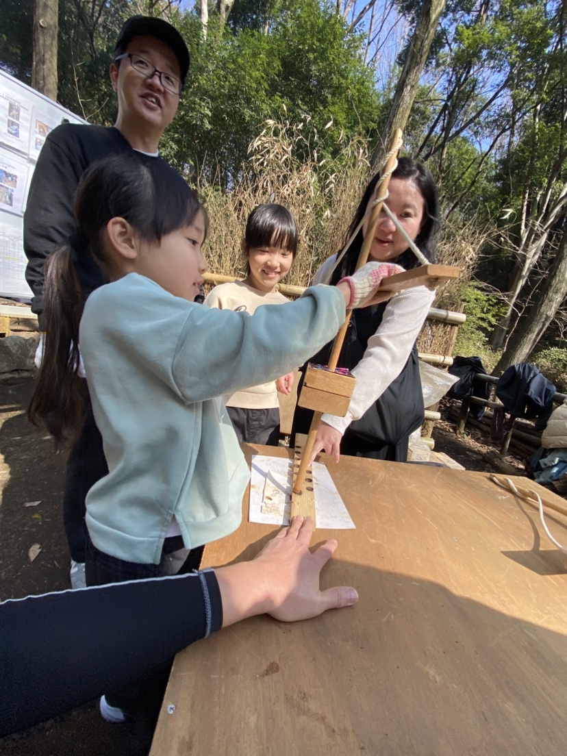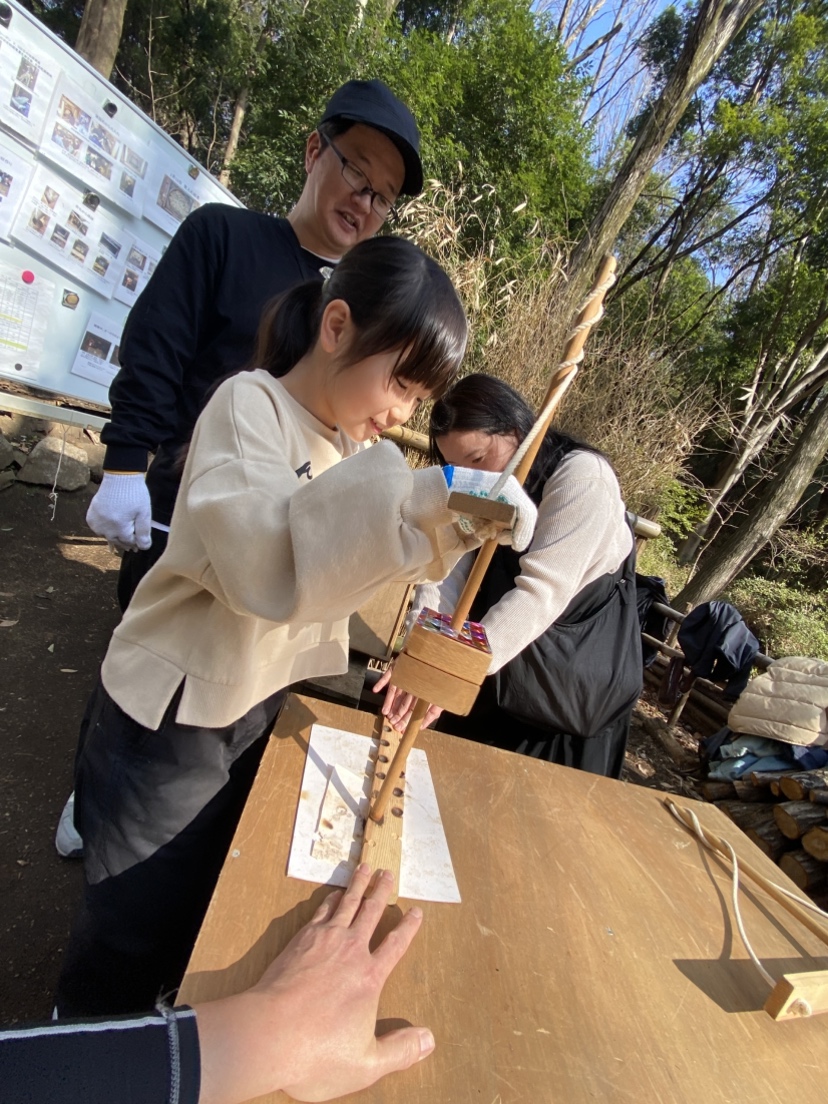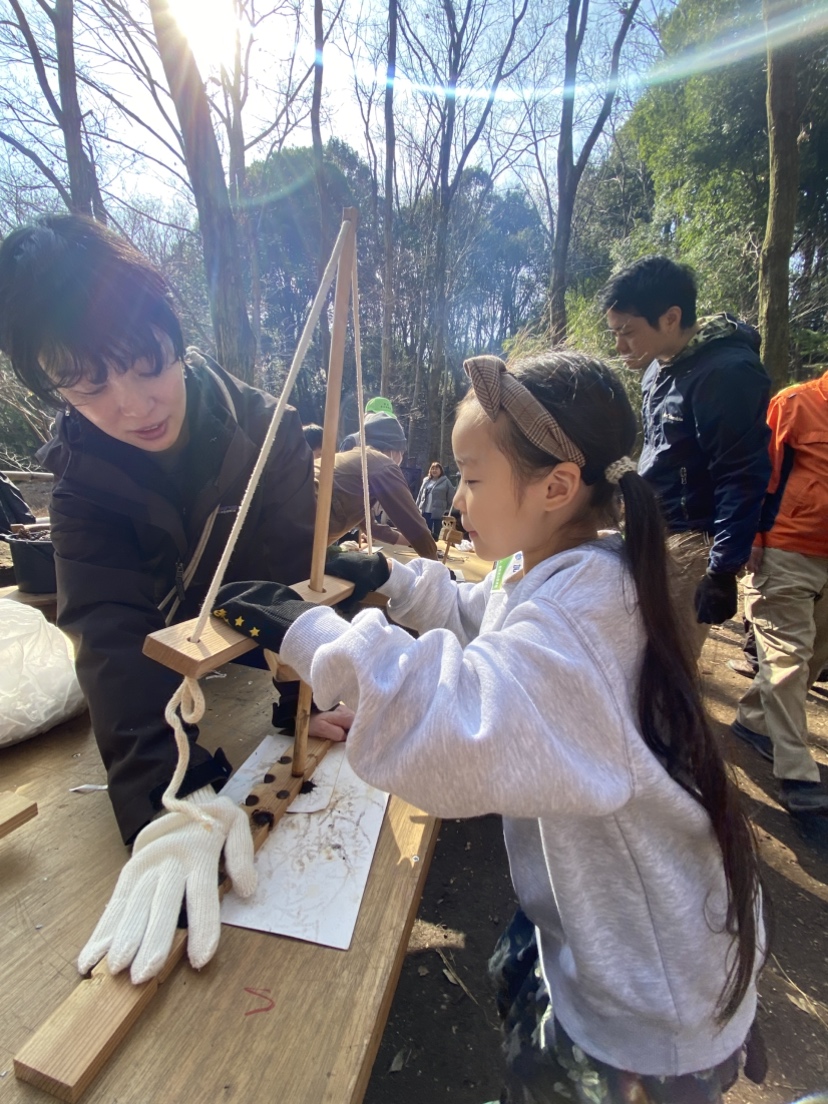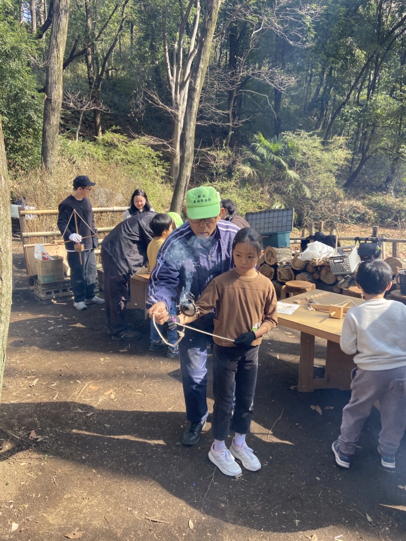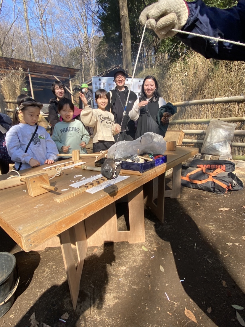 倶楽部で行っている炭焼きについて説明を聞いて炭焼きと環境保護について学んでもらえたと思います。硬い話の後は体力使う火起こし体験です。乾燥した日が幸いしたのか参加者全員が火を起こすことができました。