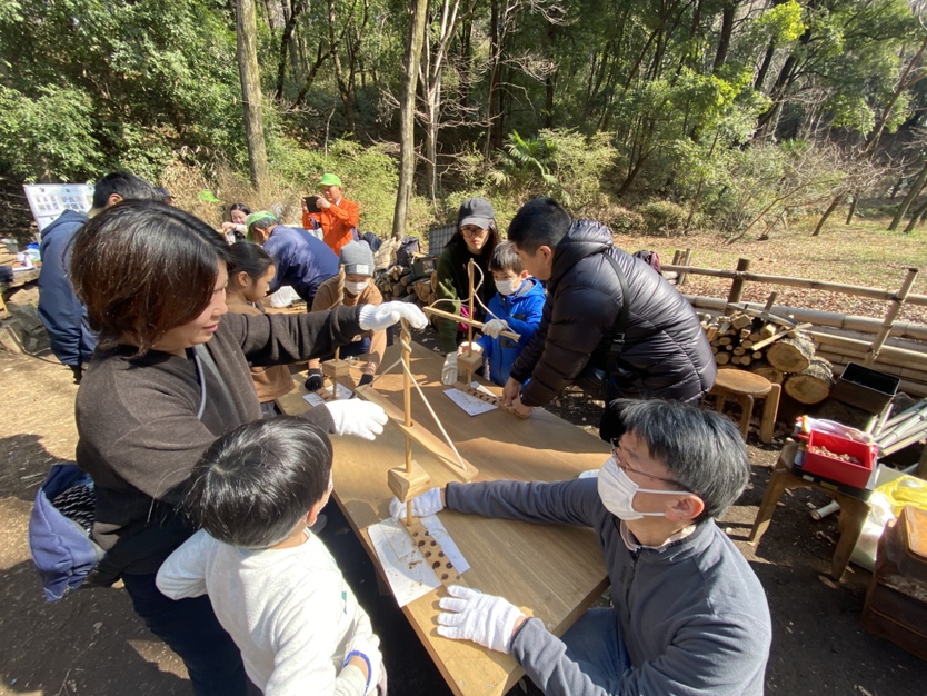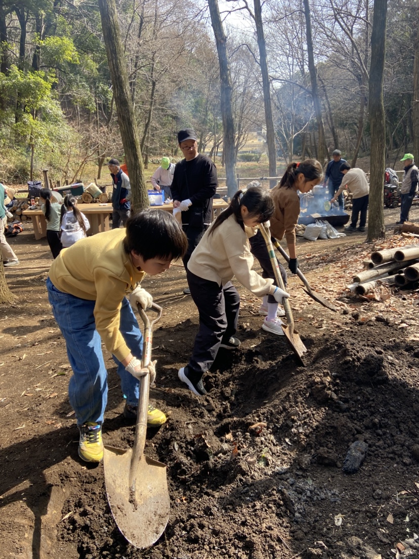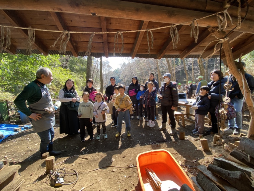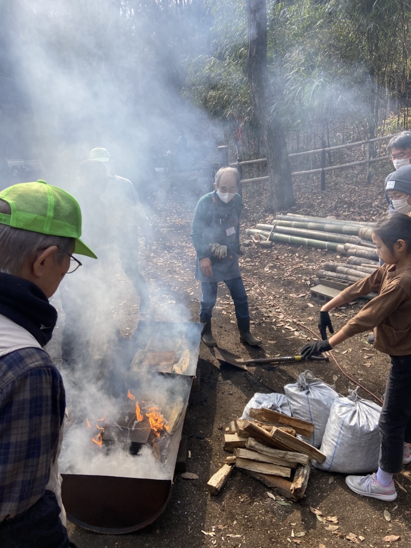 寒さ和らぐ2月の穏やかな晴れ空の中、親子炭焼体験が行われました。今年は乾燥が強い冬で彼方此方で山火事のニュースが届いていたので、火を使うイベントの炭焼きは少し心配していました。しかし、雪と雨が数日前に降り、安心して行うことができました。