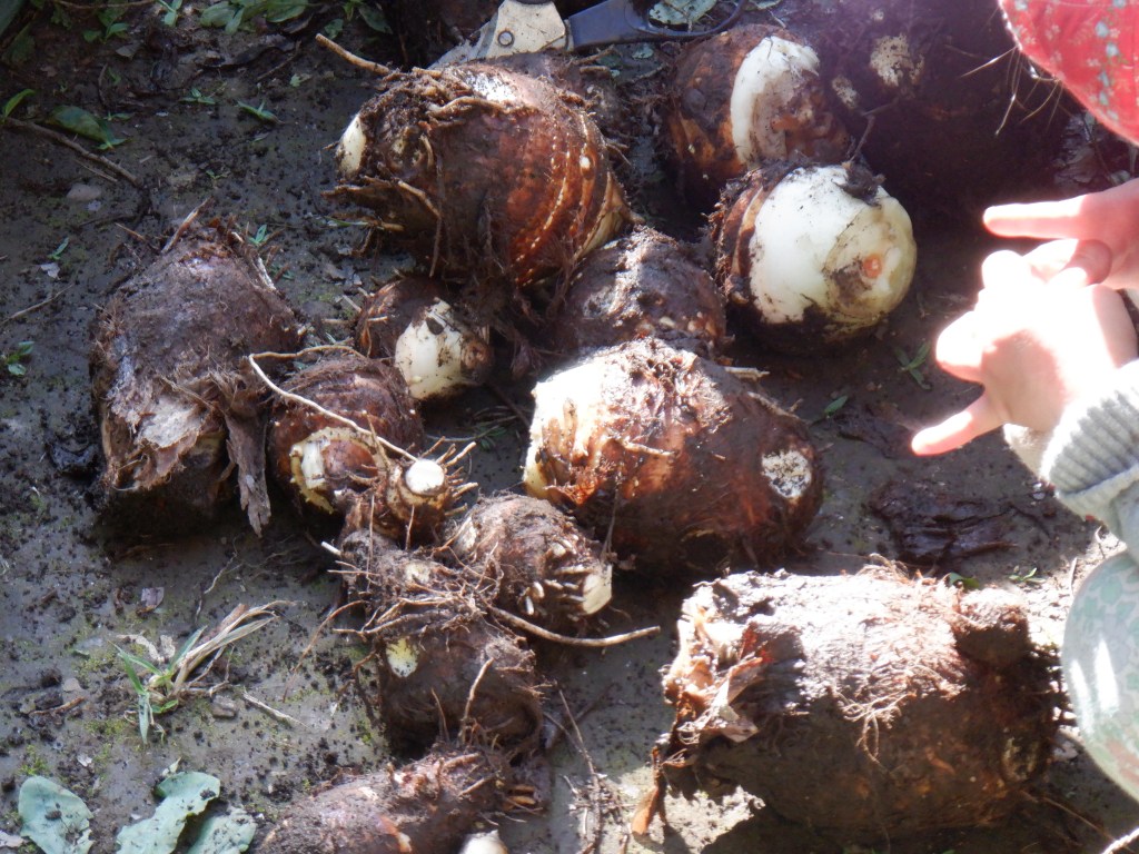 秋には稲刈り後、堆肥を鋤き込み、レンゲソウの種をまき、翌年の春を待つと、一面のレンゲ畑が、大地に恵みをもたらします。ジャガイモ・サツマイモ・サトイモの3種類の芋を植え付け、夏から秋に収穫します。その他、里山の景観にふさわしい作物を作り続けています。